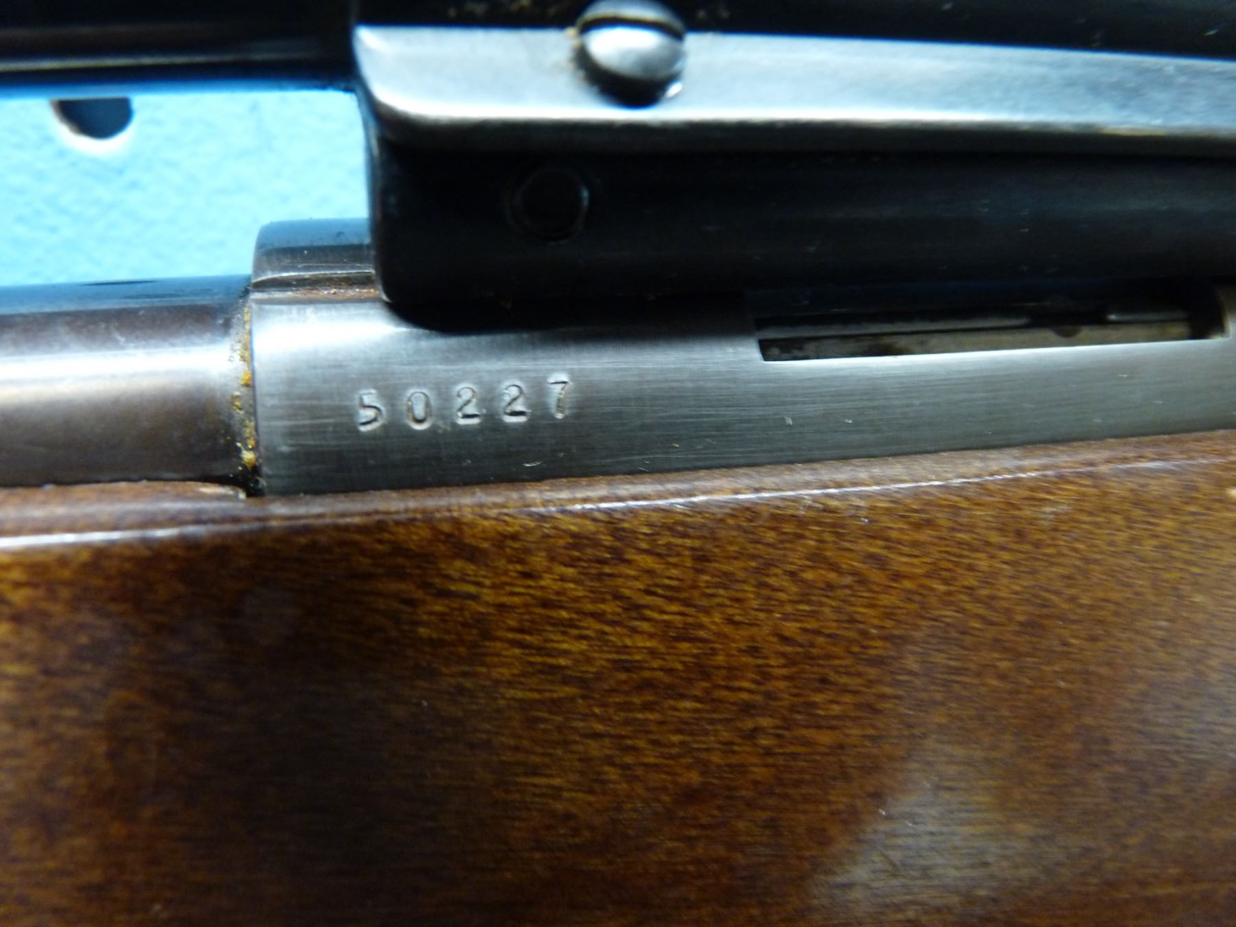 Lakefield mossberg, Mark I , single shot, caliber 22 S. L. LR. , bolt action, Weaver B6 scope , serial number 50227