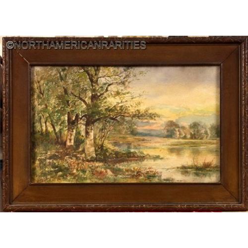 <tr><td>Title:"Lakeview, Shore & Trees", Framed Watercolor by</td></tr>