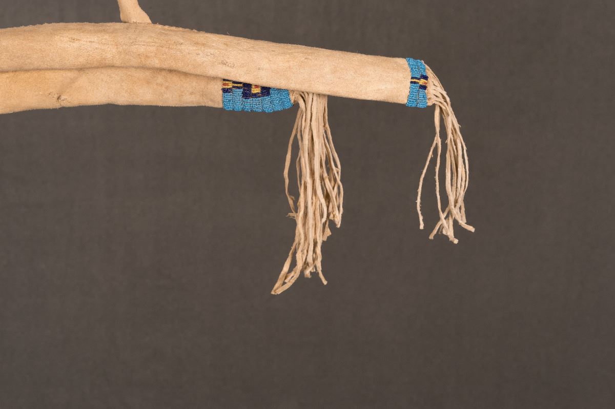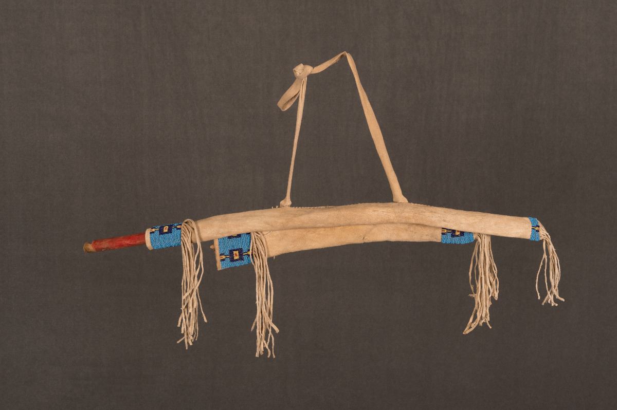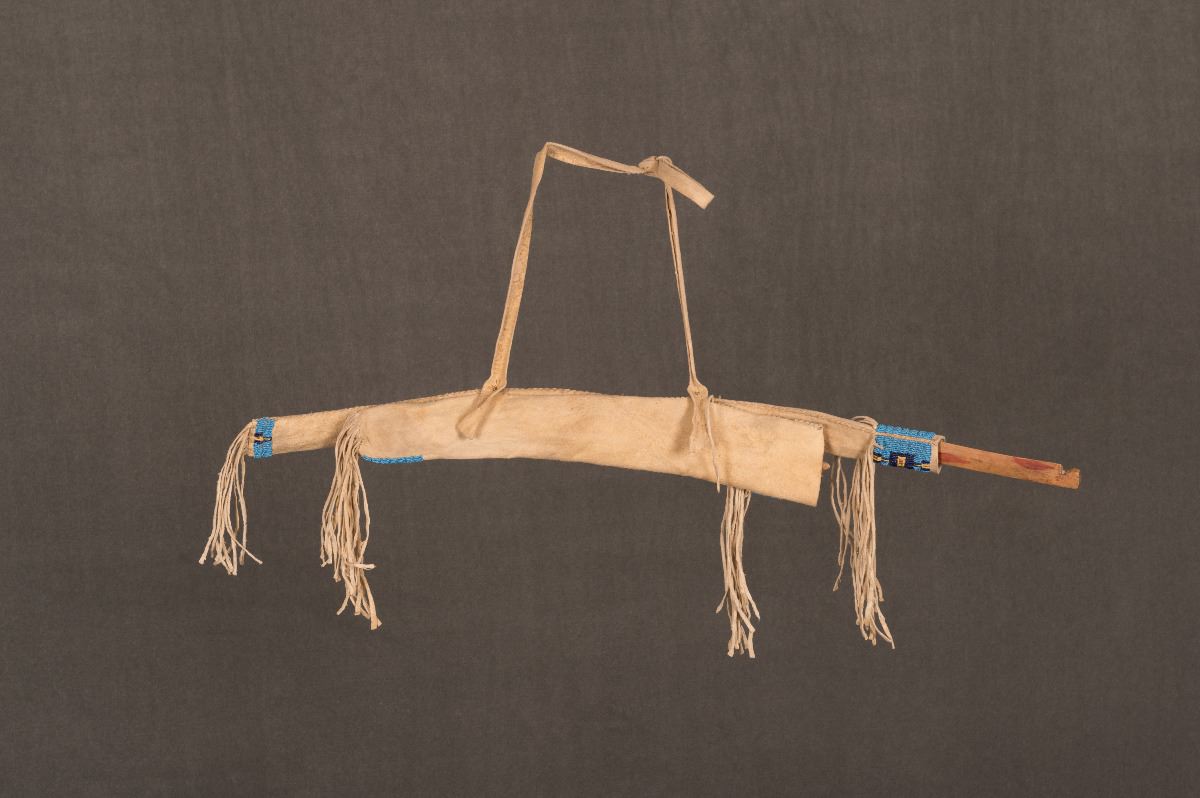 Lakota Sioux Beaded Boy's Bowcase, Bow and Quiver. Bowcase is 25" with a 27 ½" painted, ash bow. Quiver is 16" with two 16" stunning arrows. 19th century.