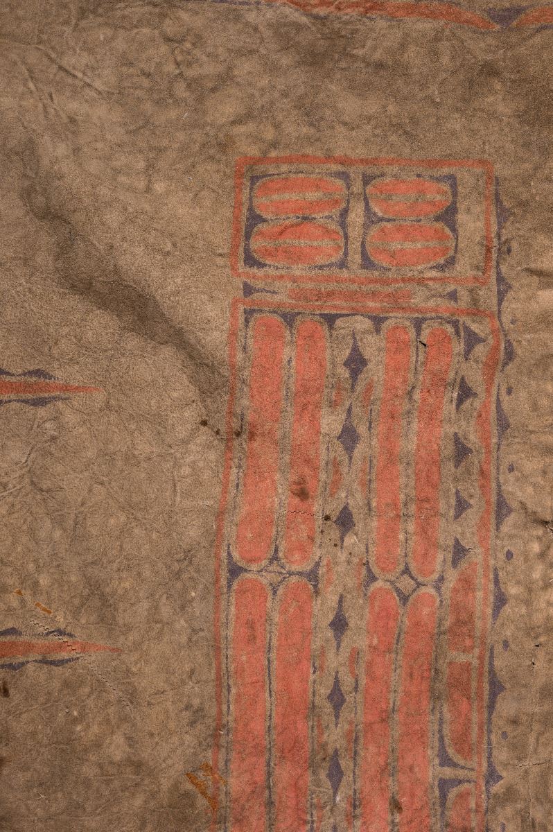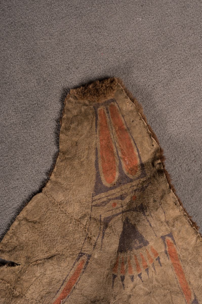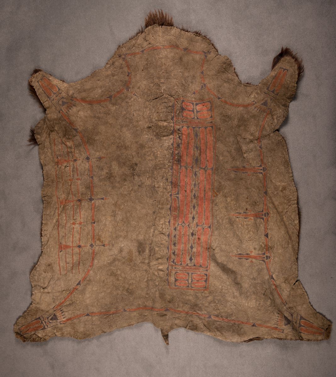 Lakota Sioux Buffalo Robe. 6'3½" x 6'6" with painted box/border design. Circa 1870s.