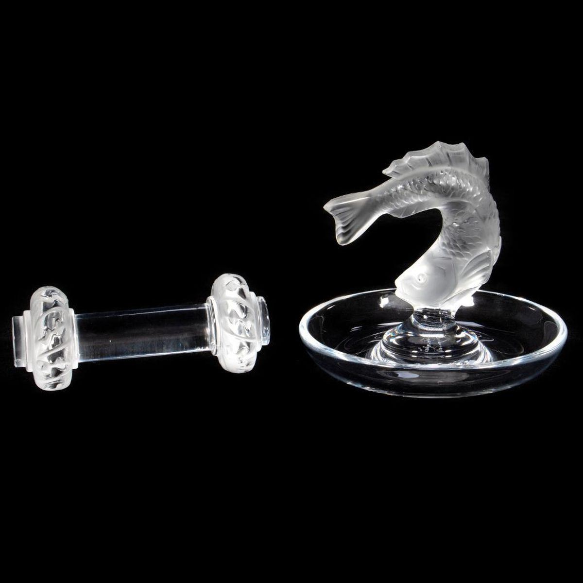 Carp 3 1/2in. h. Paperweight 3in. l. Condition: Both as new.