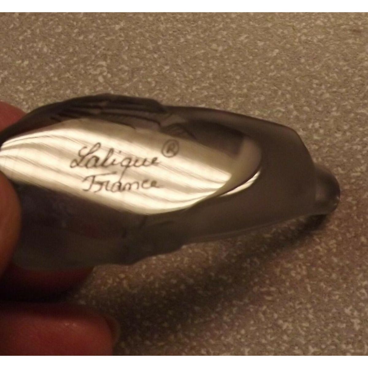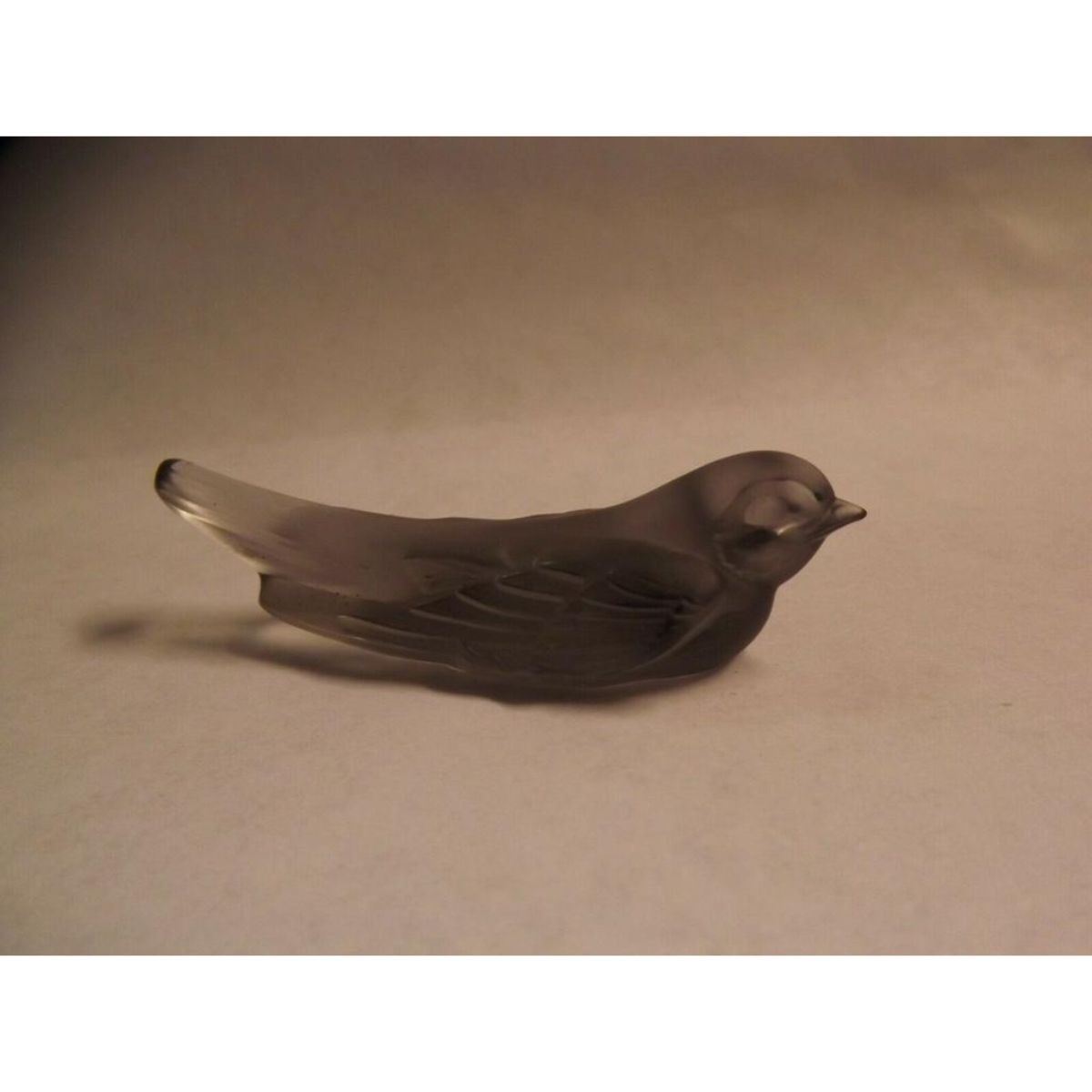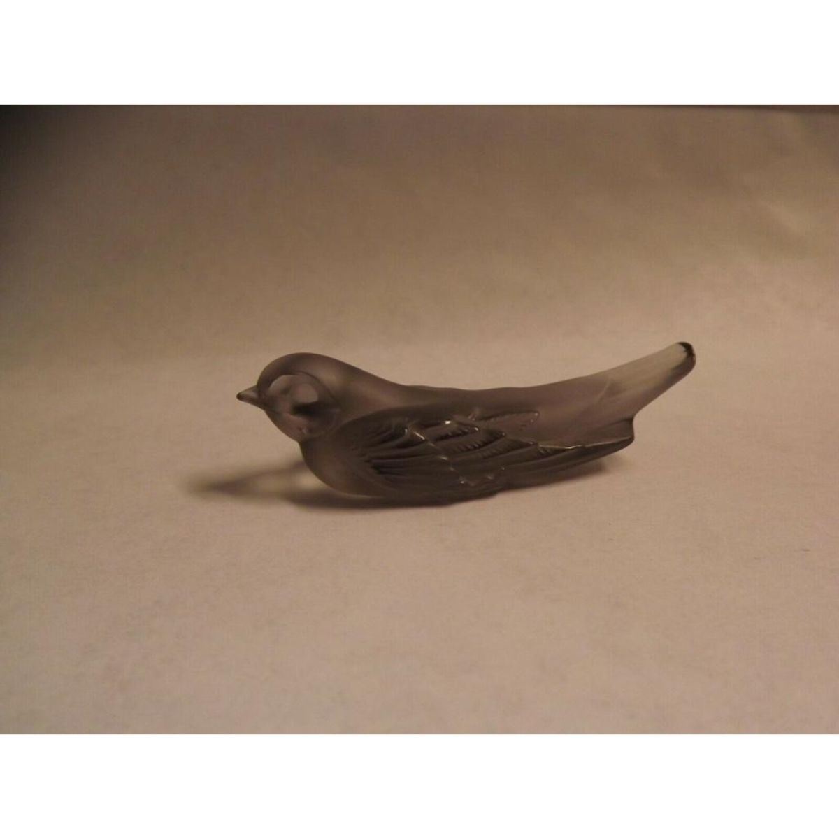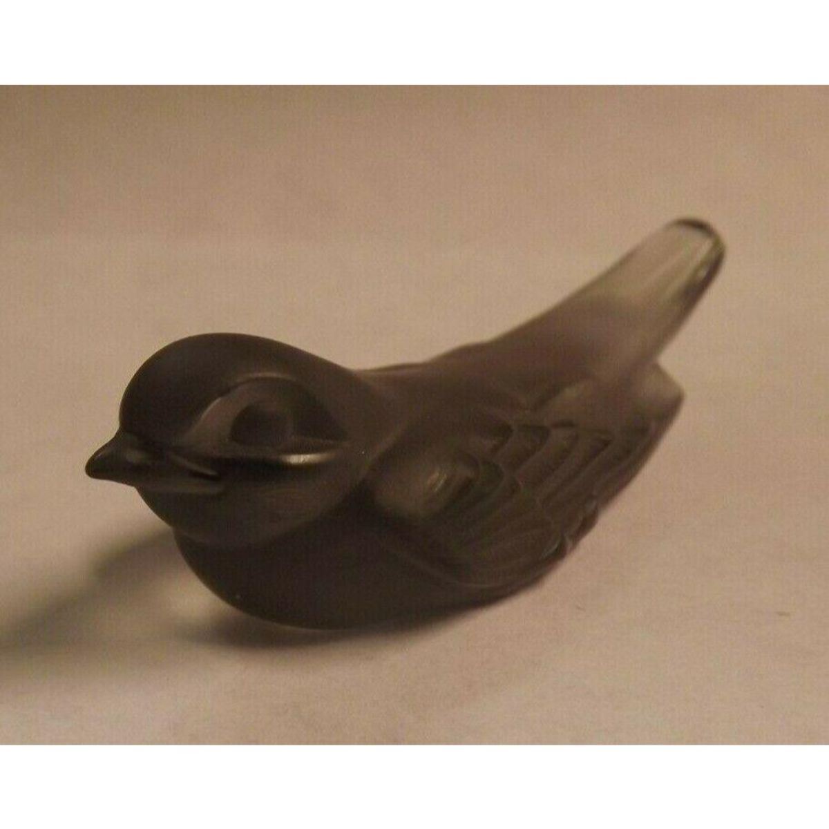 Elegant little grey crystal swallow, signed Lalique France on the bottom. Knife-rest, sculpture. 1" W X 2 3/4" L.Â