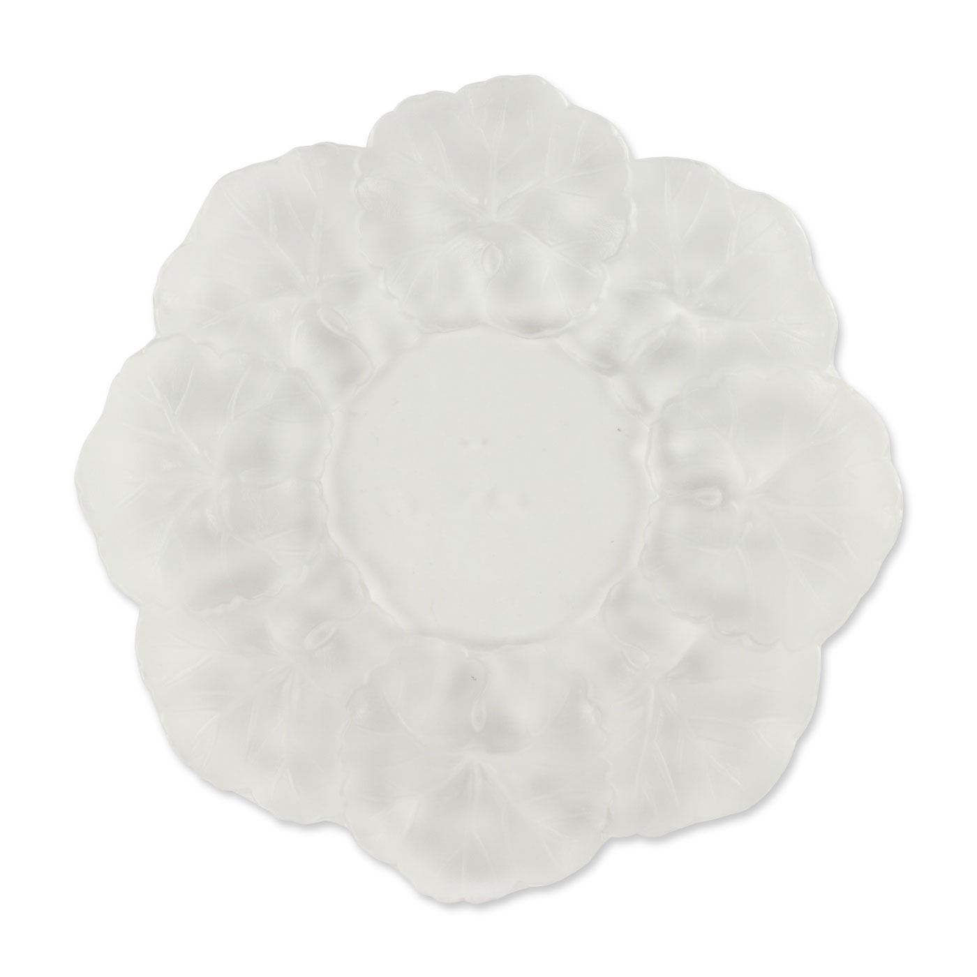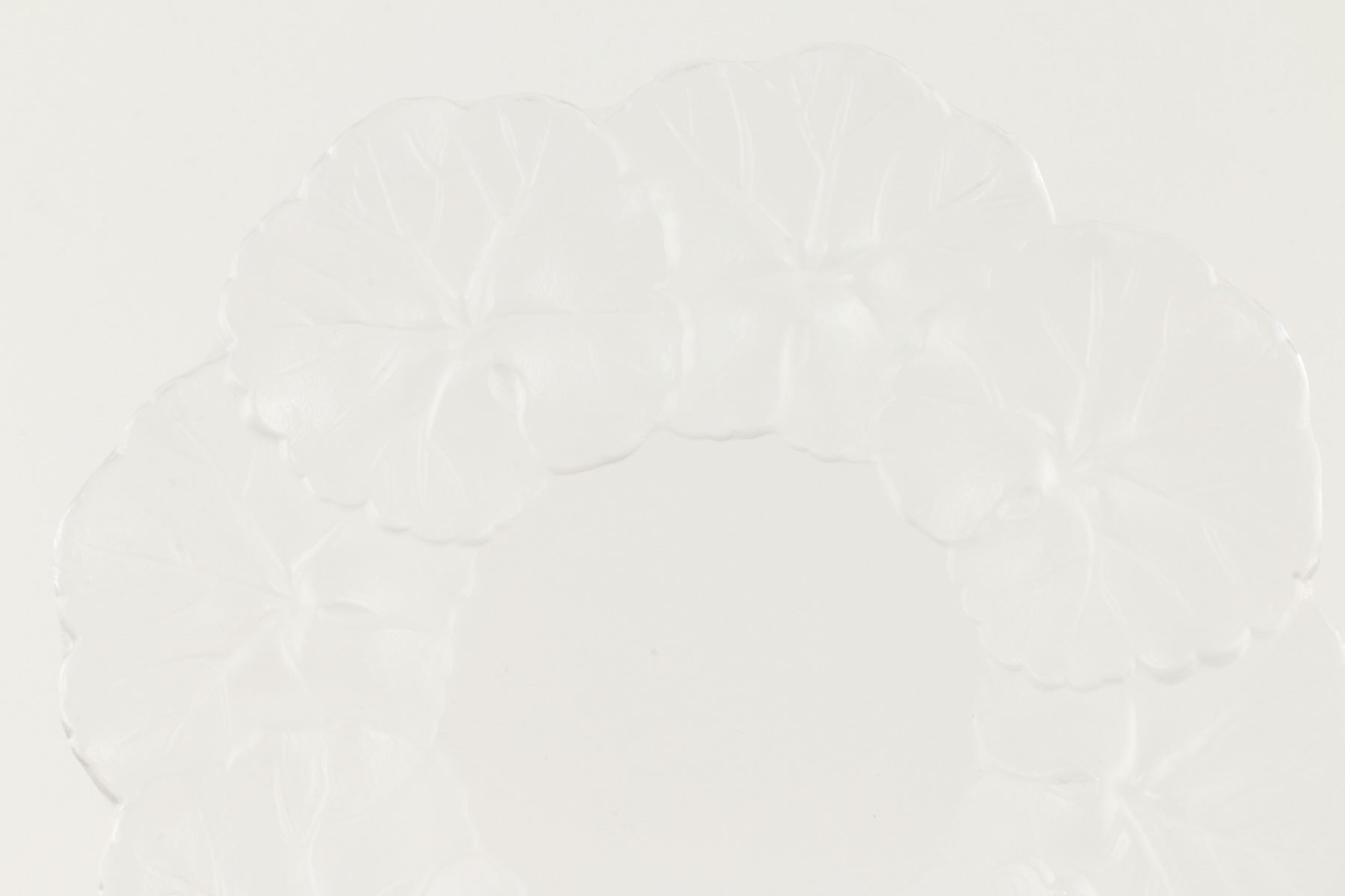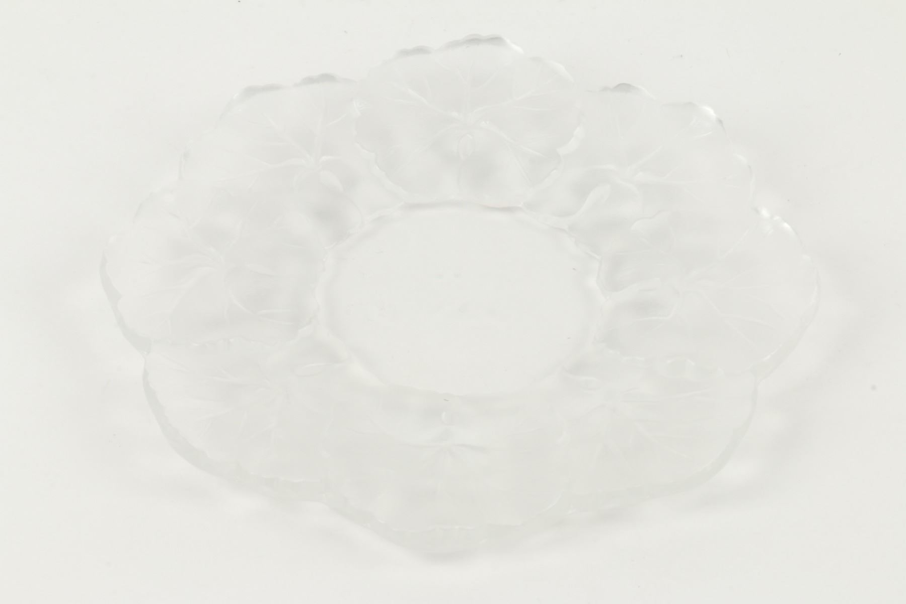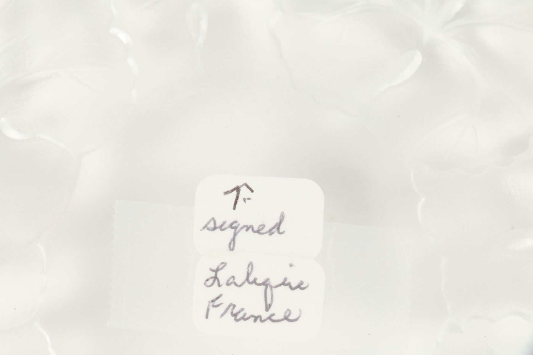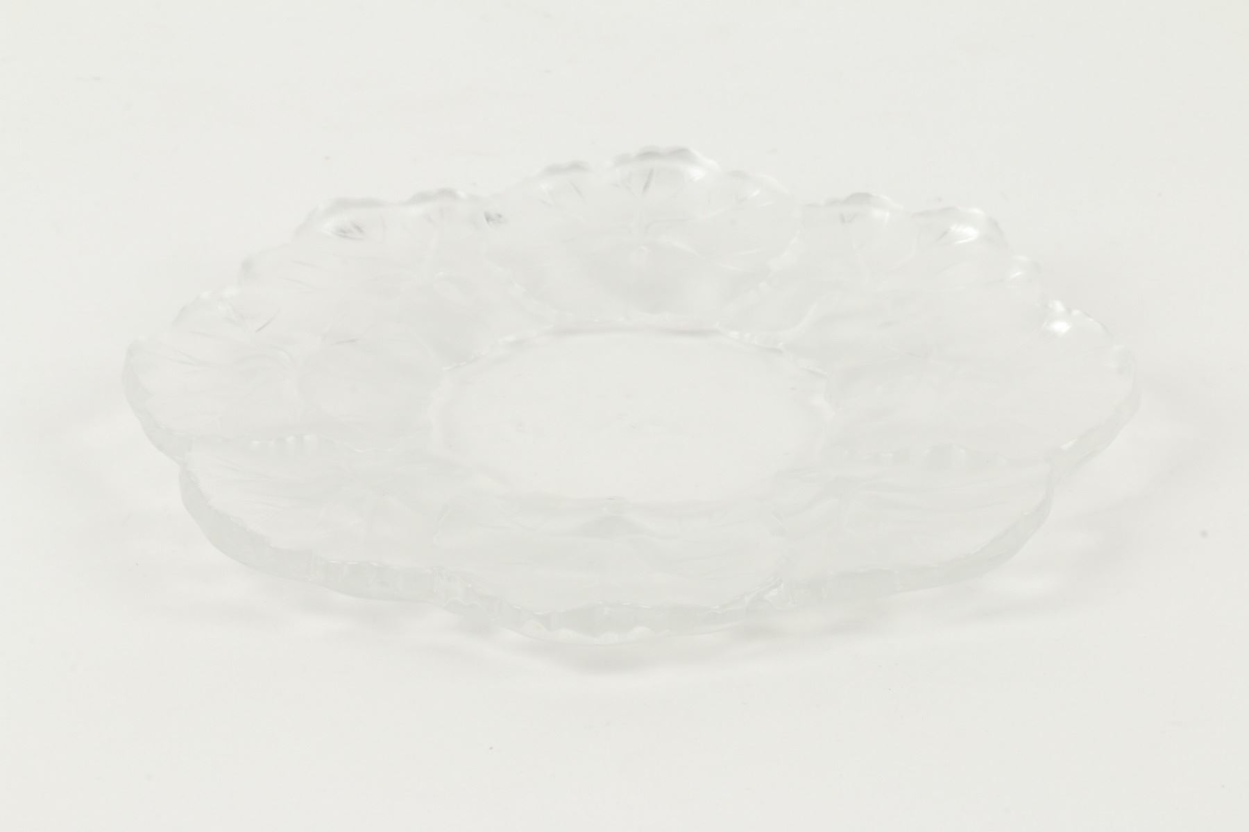 Lot 303 - Acid-etched: "Lalique, France", outer edge underside. "Pansies" pattern. 6" dia. $100-200.