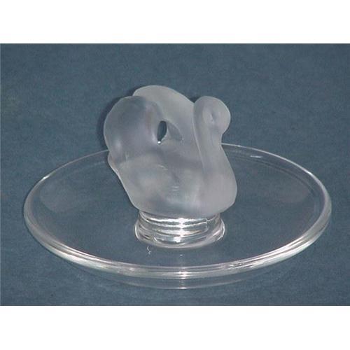 A Lalique crystal pin tray, 3 3/4" in diameter, 2 1/2" tall. A swan sits in the middle guarding whatever you put in the tray. Condition is very good, no chips. Signed Lalique, France.