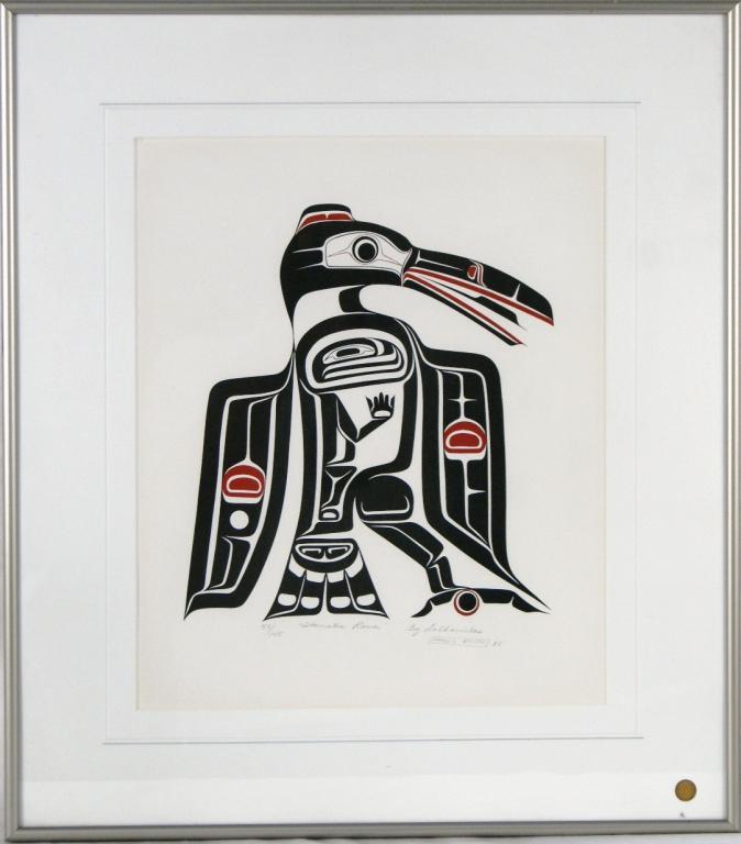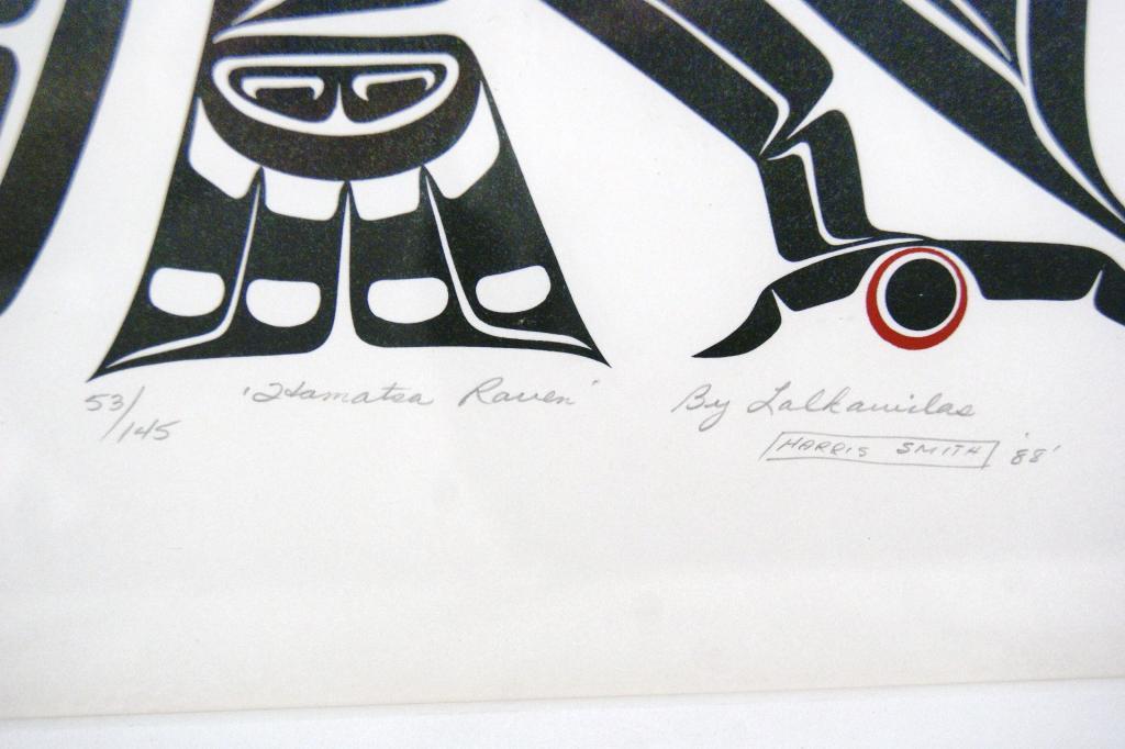 Itamatsa Raven' pencil signed. Harris proudly inherited his Grandfather's name and signs all of his work Lalkawilas (Chief who feasts the People till morning). Since becoming a full-time artist, Lalkawilas has won many awards for his artistic skills and creativity. His work has been sought out by collectors across Canada and throughout the world. During the 1994 Commonwealth Games, Harris was extremely honored to have two of his wood carvings presented to Her Majesty Queen Elizabeth II and His Royal Highness the Duke of Edinburgh.