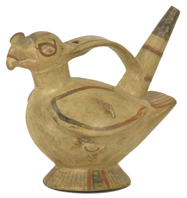 Late 1900s, Colorful revival pottery effigy done in bird form with polychrome accents. 7-1/2" x 7"