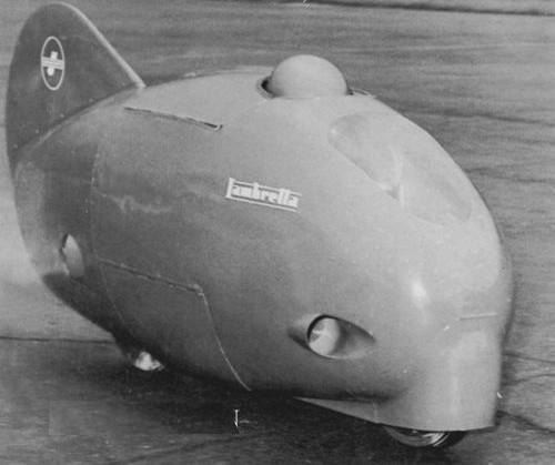 A superb and rare photo. Shown is the magnificent Lambretta 125cc scooter world record streamliner with rider Dario Ambrosini, who just started his very successful October 1950 world record breaking session which was held on the French circuit of Monthlery on October 5, 1950. That was also the day the photograph was taken. A team of three riders, Ambrosini, Ferri and Rizzi, broke an impressive string of world records that day. The 1,000 km (620 miles) world land speed worldrecord was broken with average speed of 82.34 mph(132.51 km/h)! The 6 hours world land speed worldrecord was broken with average speed of 82.59 mph (132.92 km/h)! And the 12 hours world land speed worldrecord was broken with average speed of 82.35 mph (132.53 km/h)! The Lambretta world record breaker was used in 1950 and 1951. It featured a smartly build chassis and a very aerodynamic shell. The engine was a very advanced 125cc single cylinder two stroke, which still was quite close to the engine of the production model. It had a bore and stroke of 52 x 58 mm and delivered a hefty power output of 13.5 bhp at 9,000 r.p.m. In order to up the power as much as possible, a supercharger was fitted, making a methanol based fuel a necessity, as well as a very advanced exhaust system, made perfectly to suit the supercharger on the two stroke engine. The Lambretta was a line of motor scooters originally manufactured in Milan, Italy, by Innocenti but also manufactured under license by Société Industrielle de Troyes (S.I.T.) in France, NSU in Germany, Serveta in Spain, API in India, Pasco in Brazil, Auteca in Colombia, and Siambretta in Argentina. Lambretta has a long and interesting history. In 1922, Ferdinando Innocenti of Pescia built a steel-tubing factory in Rome. In 1931, he took the business to Milan where he built a larger factory producing seamless steel tubing and employing about 6,000. During the Second World War the factory was heavily bombed and destroyed. It is said that surveying the ruins, Innocenti saw the future of cheap, private transport and decided to produce a motor scooter – competing on cost and weather protection against the ubiquitous motorcycle. The main stimulus for the design style of the Lambretta and Vespa dates back to Pre-WWII Cushman scooters made in Nebraska, USA. These olive green scooters were in Italy in large numbers, ordered originally by Washington as field transport for the Paratroops and Marines. Aeronautical engineer General Corradino D'Ascanio, responsible for the design and construction of the first modern helicopter by Agusta, was given the job by Ferdinando Innocenti of designing a simple, robust and affordable vehicle. It had to be easy to drive for both men and women, be able to carry a passenger, and not get its driver's clothes dirty. D'Ascanio, who hated motorbikes, designed a revolutionary vehicle. It was built on a spar-frame with a handlebar gear change and the engine mounted directly on to the rear wheel. The front protection "shield" kept the rider dry and clean in comparison to the open front end on motorcycles. The pass-through leg area design was geared towards women, as wearing dresses or skirts made riding conventional motorcycles a challenge. The front fork, like an aircraft's landing gear, allowed for easy wheel changing. The internal mesh transmission eliminated the standard motorcycle chain, a source of oil, dirt and aesthetic misery. This basic design allowed a series of features to be deployed on the frame which would later allow quick development of new models. However, General D'Ascanio fell out with Innocenti, who rather than a moulded and beaten spar frame wanted to produce his frame from rolled tubing, there by allowing him to revive both parts of his pre-War company. General D'Ascanio disassociated himself with Innocenti, and took his design to Enrico Piaggio who produced the spar framed Vespa from 1946. Taking a year longer to produce, the 1947 Lambretta featured a rear pillion seat for a passenger, or optionally a storage compartment. The original front protection "shield" was a flat piece of aero metal; later this developed in to a twin skin to allow additional storage on the 'back of'/behind the front shield, similar to the glove compartment in a car. The fuel cap was underneath the (hinged) seat, which saved the cost of an additional lock on the fuel cap or need for additional metal work on the smooth skin. Deriving the name Lambretta from the small river Lambro in Milan, which ran near to the factory; Innocenti started production of Lambretta scooters in 1947 - the year after Piaggio started production of its Vespa models. Like Vespas, Lambrettas have 3 or 4 gears and two stroke motors with capacities ranging from 49cc to 198cc. Most two-stroke engines require a mixture of oil with the gasoline in order to lubricate the piston and cylinder. Unlike the Vespa, which was built with a unibody chassis pressed from sheets of steel, Lambrettas were based around a more rigid tubular frame, although the 'J' series model produced from 1964 through 1966 did have a monocoque body. Early versions were available in 'closed', with fully covered mechanicals or 'open', with minimal panels and thus looking like an unusual motorcycle. The model A and model B were only available in 'open' style. The C and D models were noted for their torsion bar rear suspension, the D model outsold every other 2 wheeled vehicle combined at its peak. The much greater success of the 'closed' version confirmed that riders wanted protection from the weather and a clean looking machine. Along with the Vespa, Lambretta was an iconic vehicle of the 1950s and 1960s when they became the adopted vehicle of choice for the UK youth-culture known as Mods. The character Jimmy from the influential scooter movie Quadrophenia rode a Lambretta Li 150 Series 3. Of the 1960s models, the TV (Turismo Veloce), the Special (125 and 150), the SX (Special X) and the GP Grand Prix are generally considered the