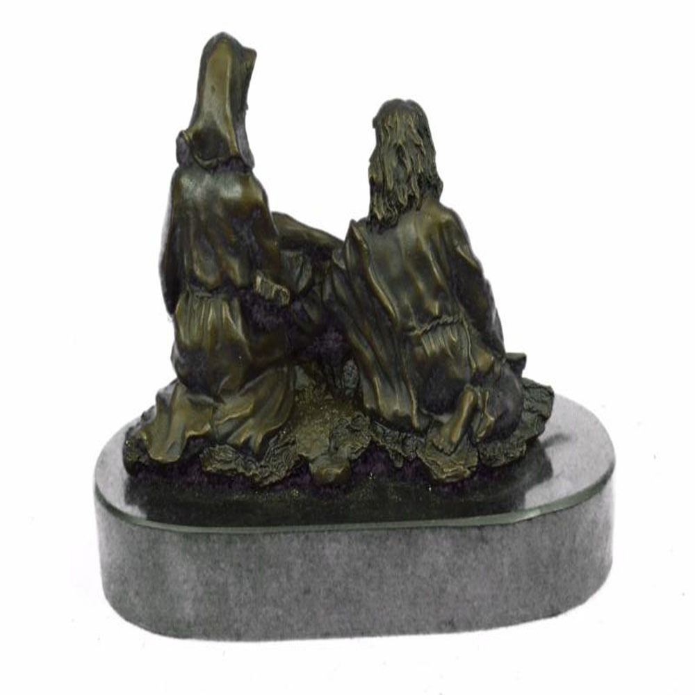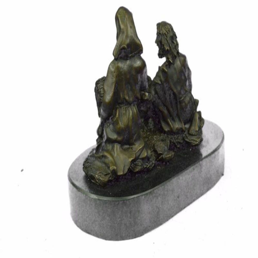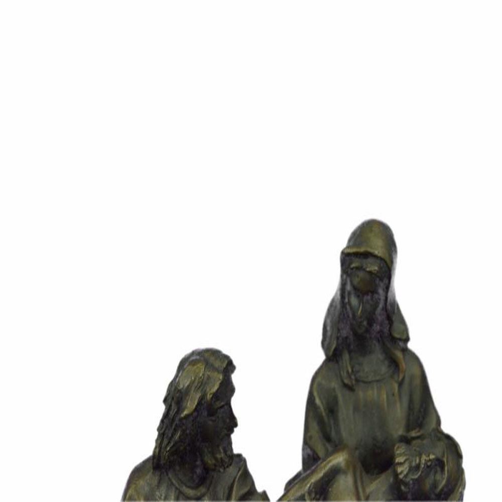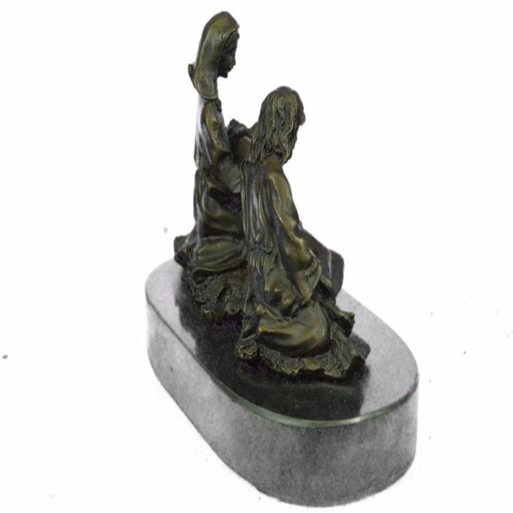 The Lamentation Christ in prone position, his sinister arm being cradled by the Virgin Mary who is at left, Kneeling front of Christ, Mary Magdalene cradles Christ feet, This sculpture stands on a marble base and the ancient lost wax method was used to craft this piece. Bronze Dimensions with Marble Base: Height 6 X Width 8 inches. Weight: 7 LBS.