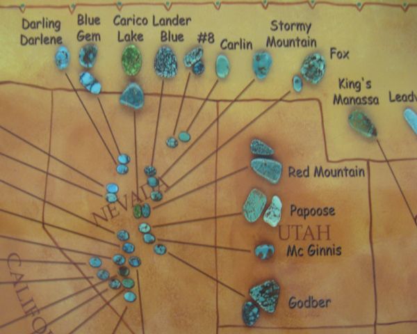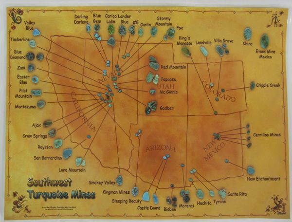 Laminated Southwest Turquoise Mines Poster by C. J. Prophet, measures 24 3/8'' x 18 3/8''