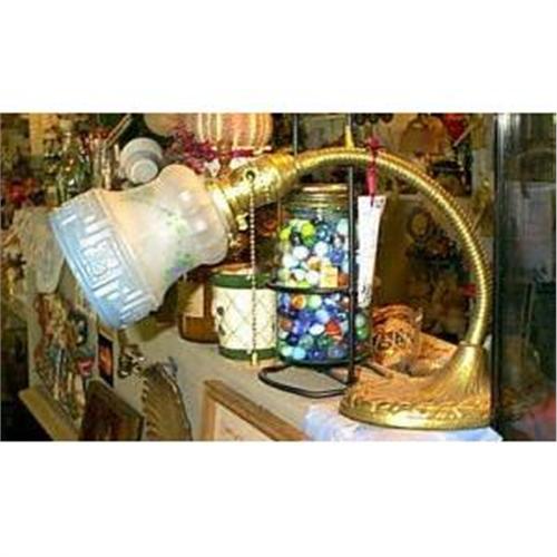 Table Lamp w/Flex Neck; Fitted w/beautiful old vintage glass electric shade
