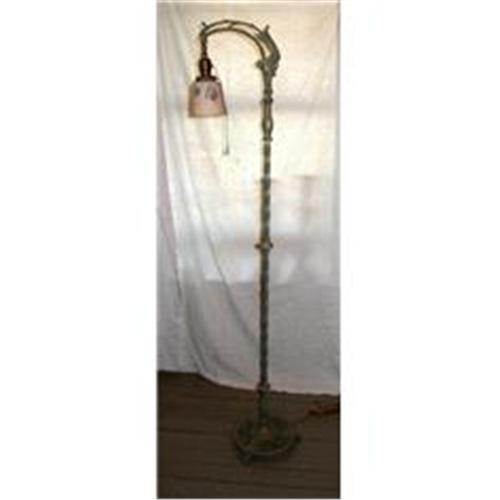 Floor lamp, bridge arm style, vintage glass shade, rewired - ready to light your world.</em></td>