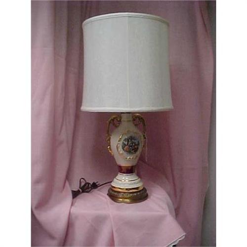 Lamp - French Cameo Front with Gold Trim, White Shade. This lamp is 27? tall and and roughly 13.5? wide. In good condition and good working order. Maker and year unknown.
