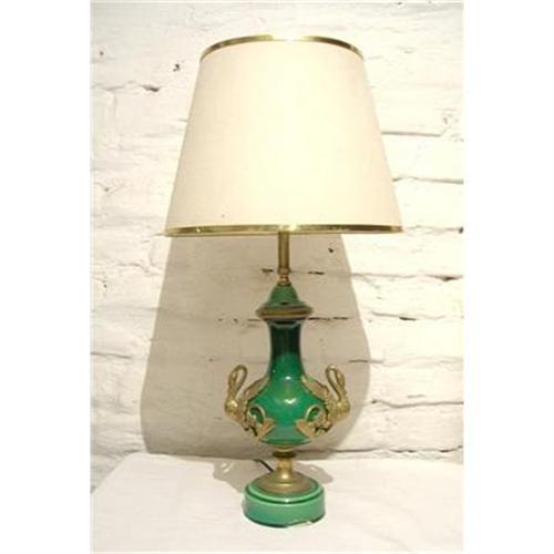 Beaitful item. Base of pottery and Bronze. With only a detail as you can see in the last picture. Representing 2 swan, very well done. Electrified is working. Meassurement (only the base):Height:16.38, Width:6.63.