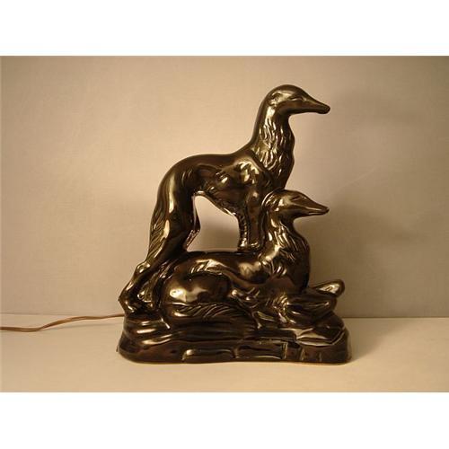 <tr><td>Title:Lamp Retro Black Porcelain Dogs 50s </td></tr>