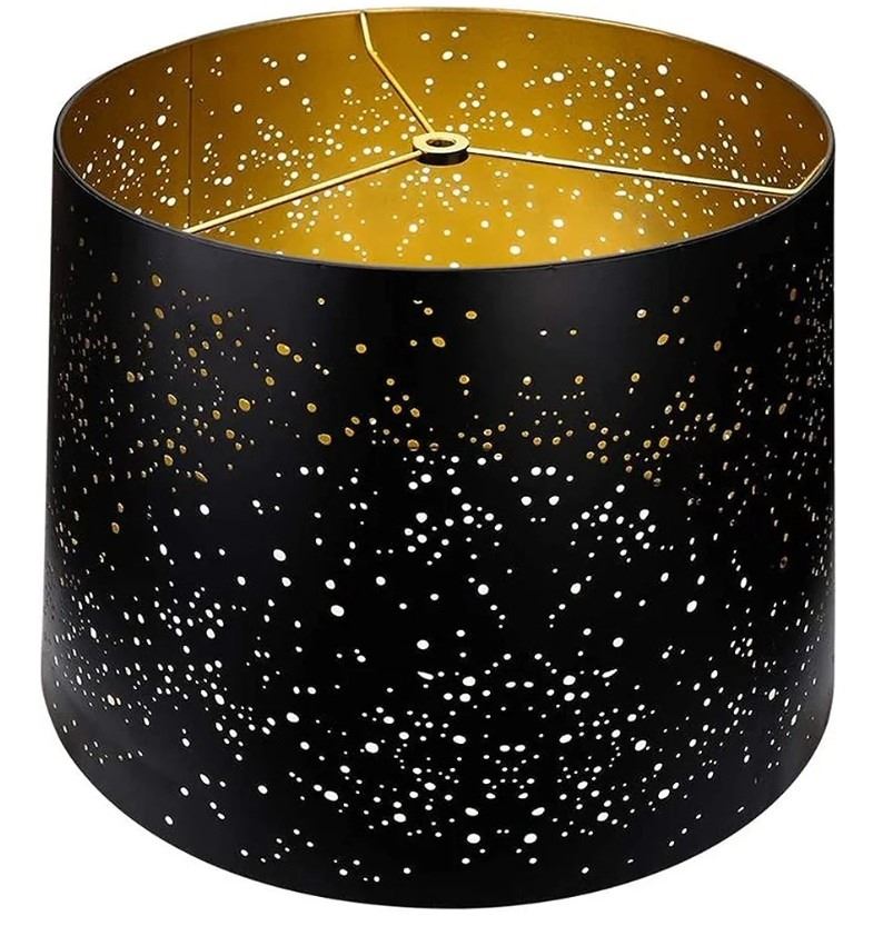 Alucset 12 x 14 x 10in, Starry Sky Etched Metal Drum Lamp Shade, Black & Gold, Shelf Pull, New Condition