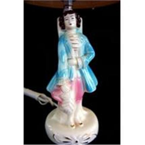Figural Colonial Gentleman Table Lamp w/Shade; dressed in fancy courting attire. </em></td>