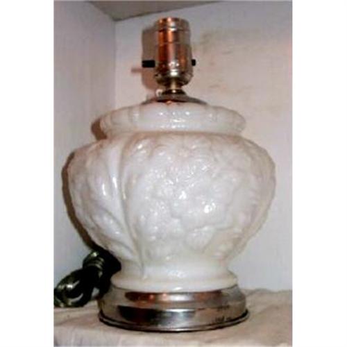 <tr><td>Title:Lamp Table Milk Glass Flower Panels</td></tr>