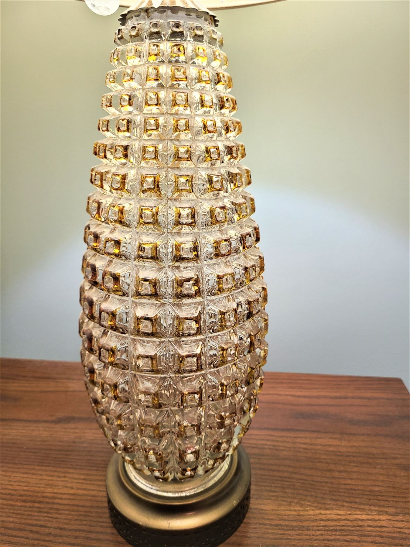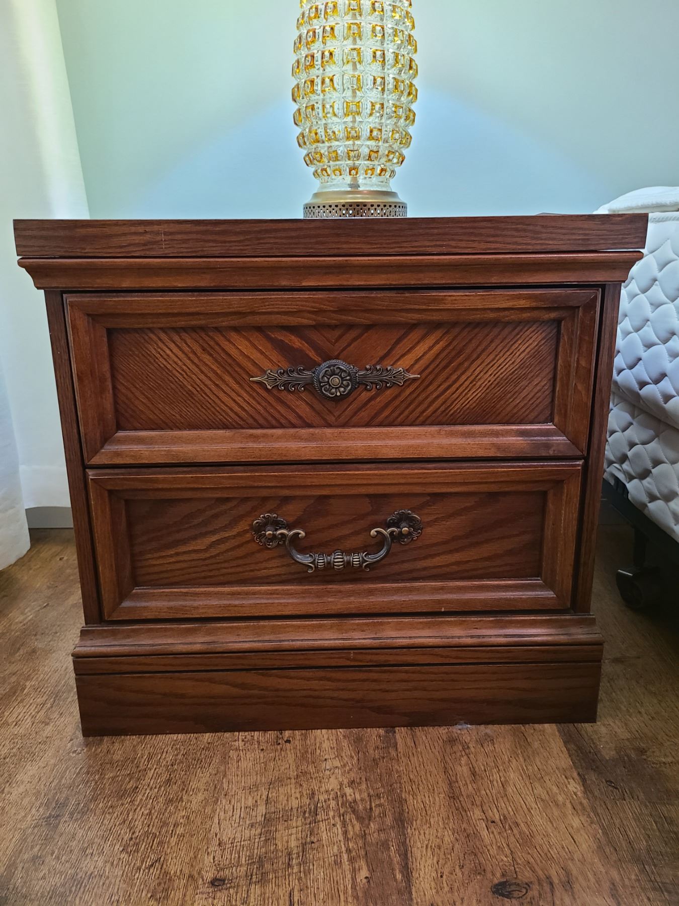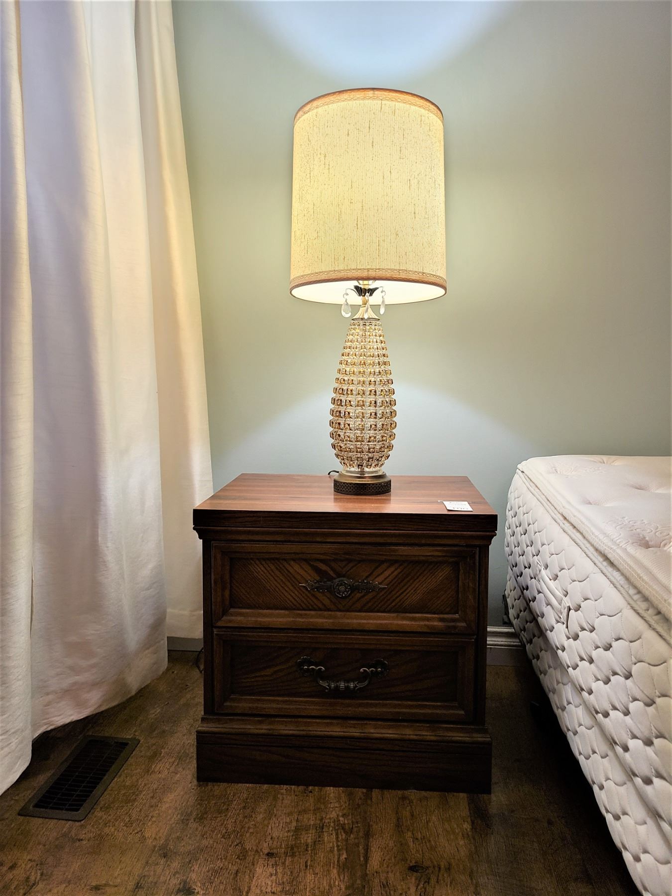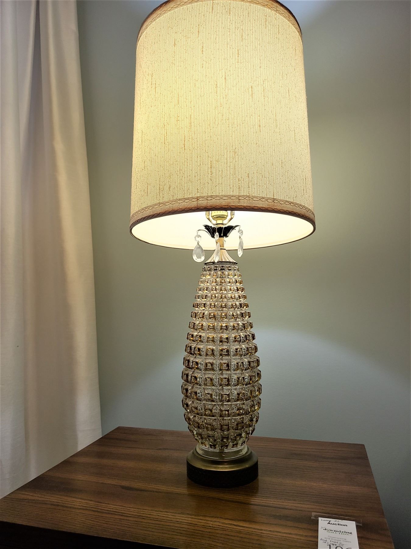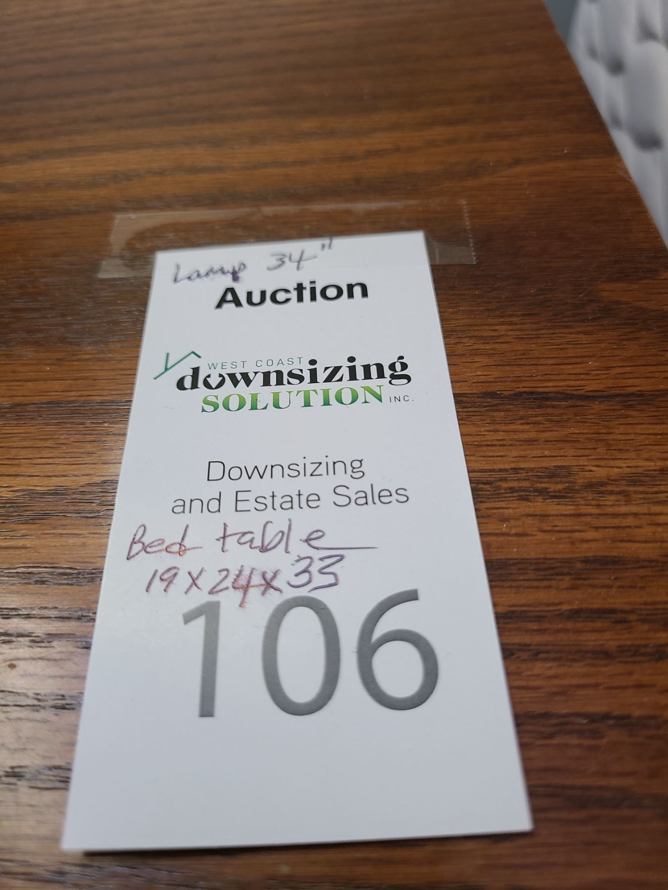 Glass bottom lamp 34” untested with bedside table 19x24x33. Bring help to move. Pickup at 11 am.