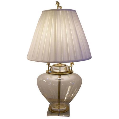 Lamp in the style of Karl Springer, wonderful mix of glass, brass and lucite.