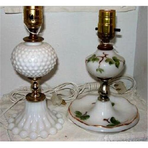 Table lamps in milk glass for collector, decorator.