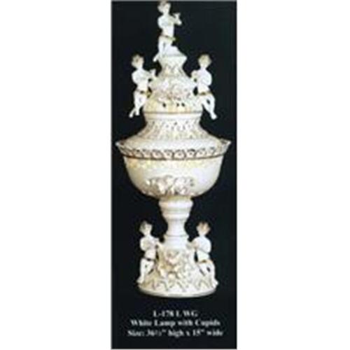 <tr><td>Title:Lamp w/ Cupids - White & Gold</td></tr>