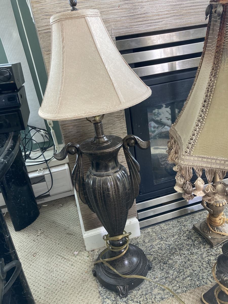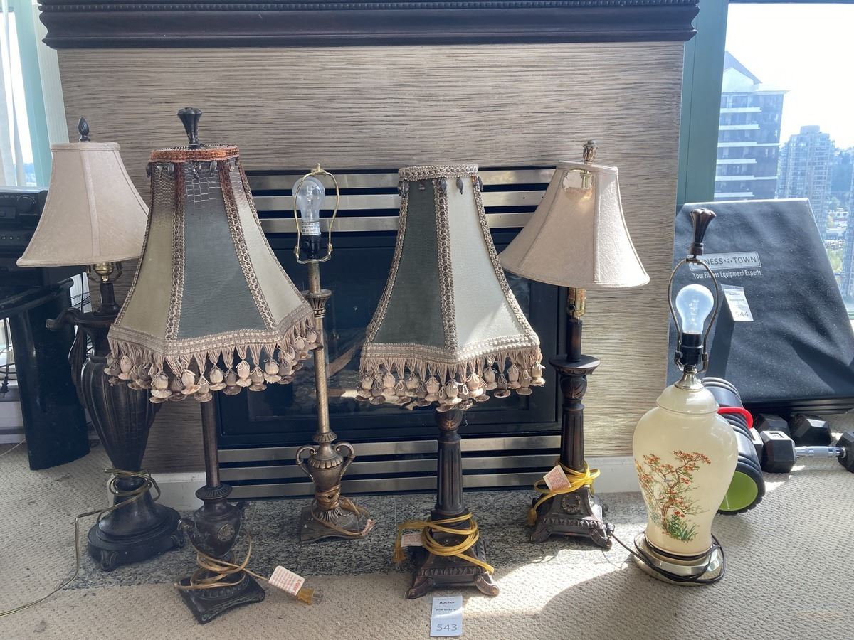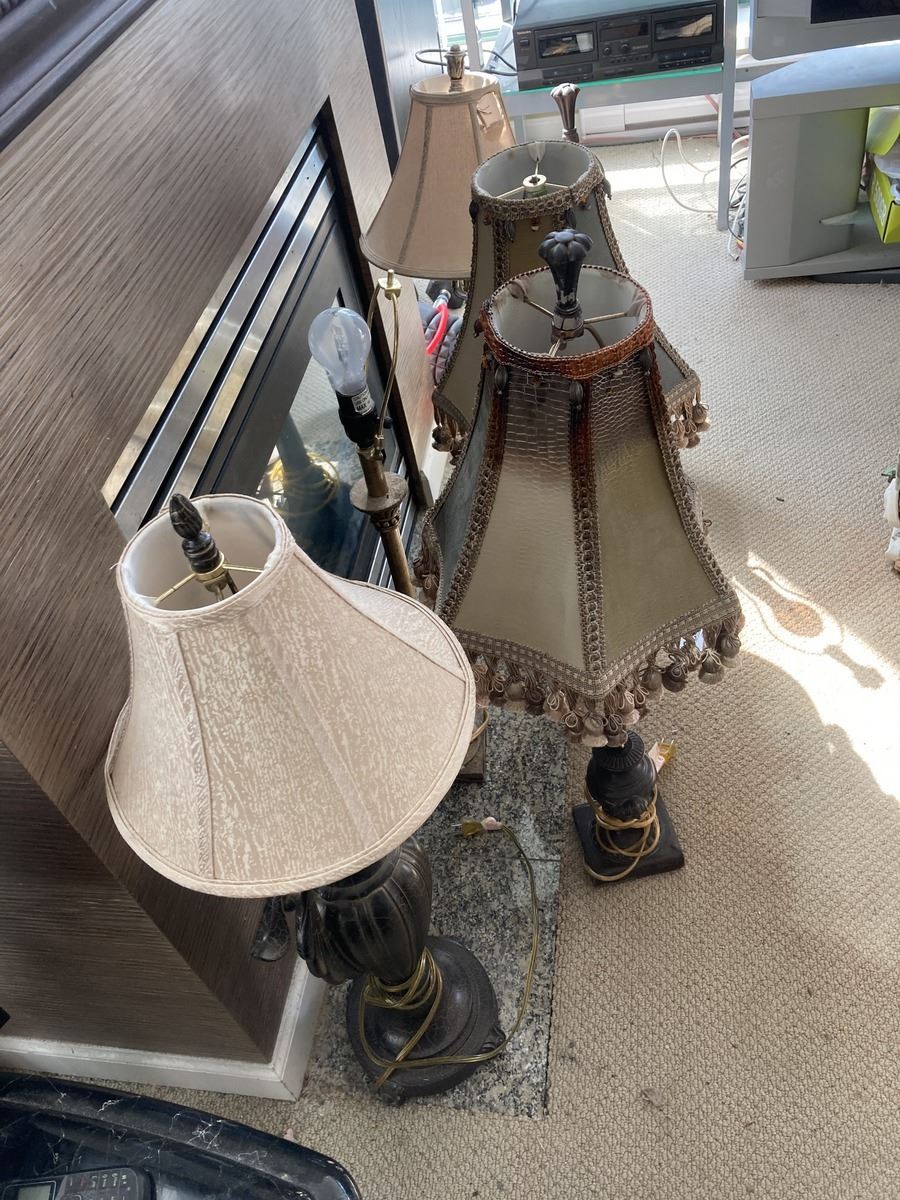 Lot includes 6 lamps 30 tall, one has damaged shade. Untested Pickup 9-10am.