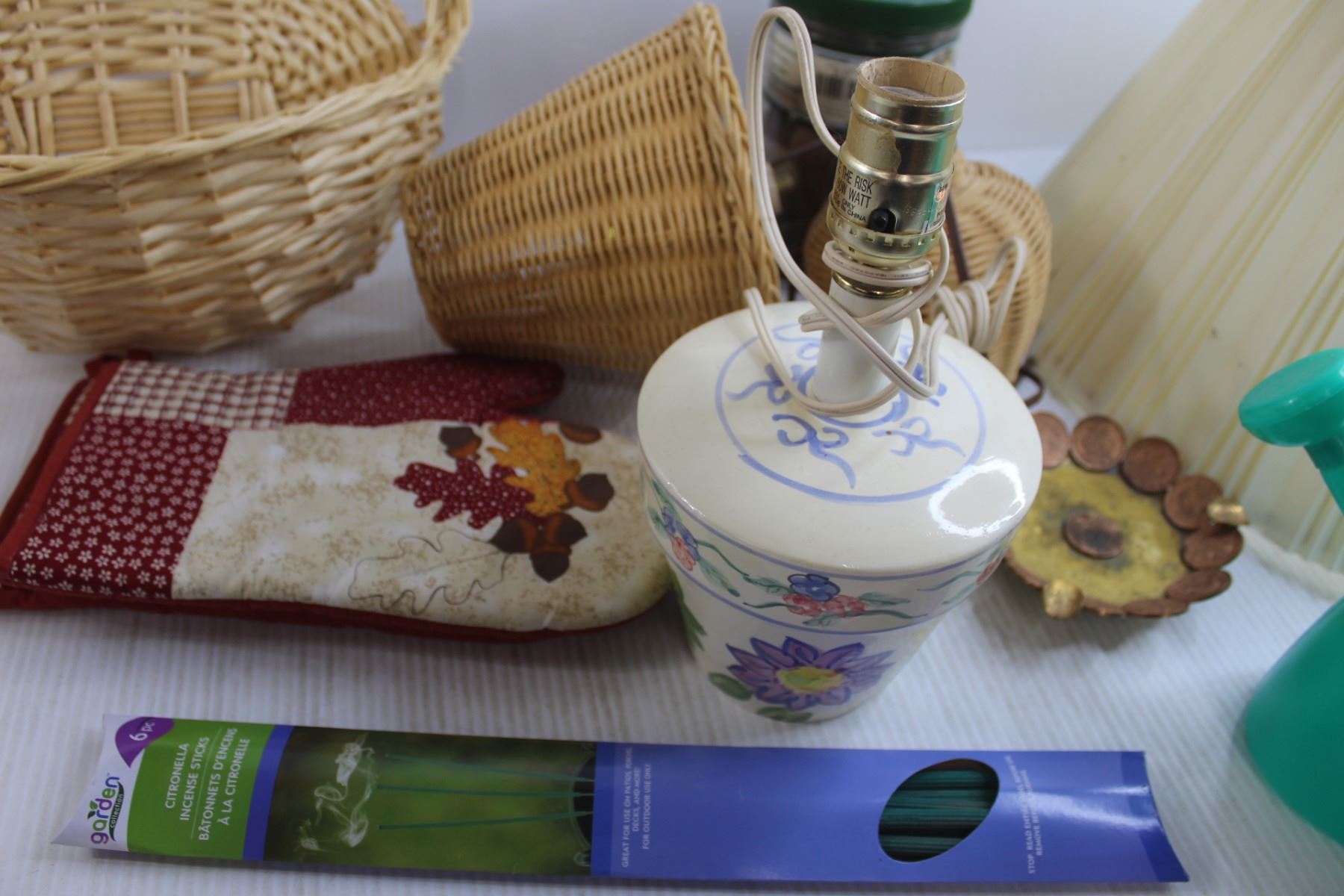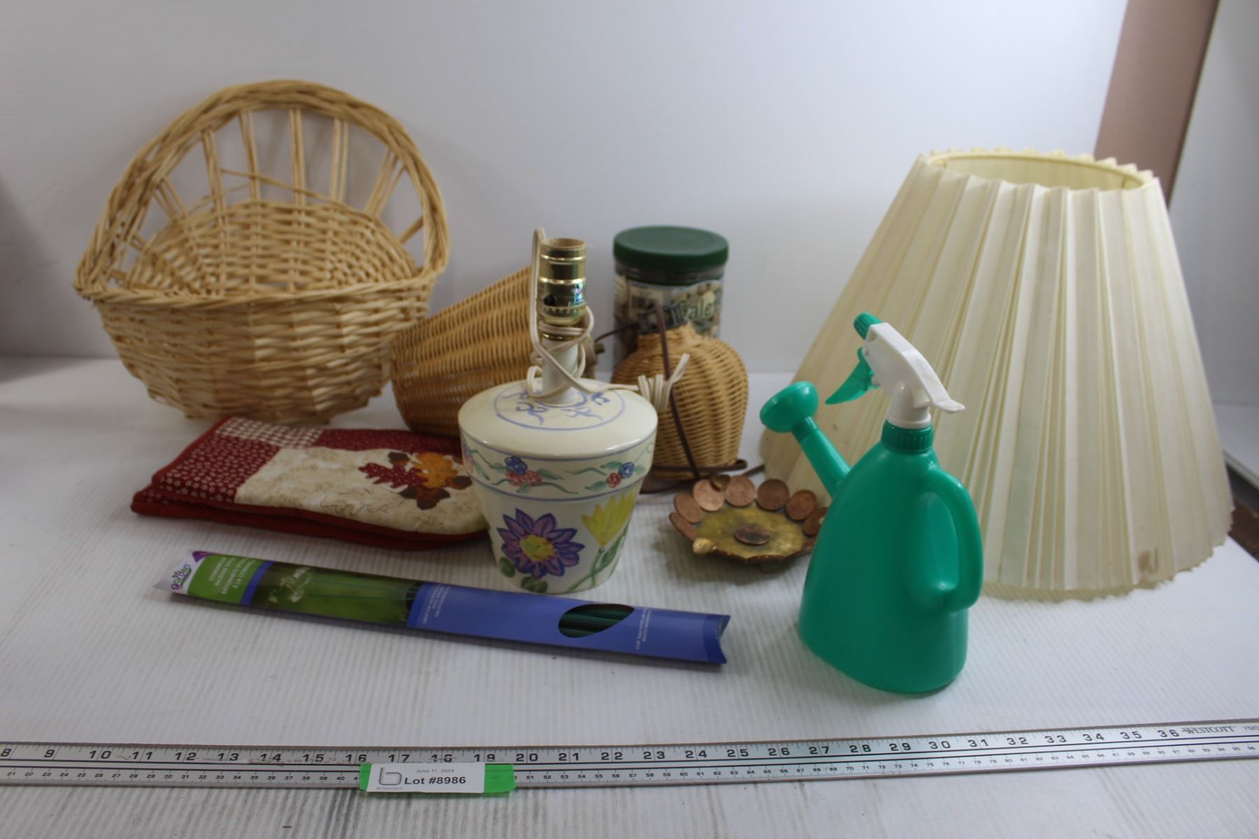 Lampshade, (2) Lamps - As Is, Oven Mitts, Misc.