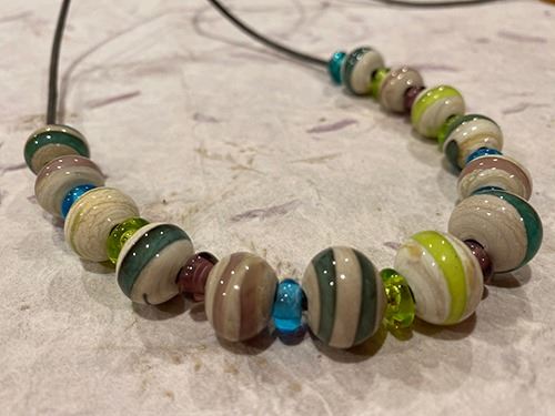 Handmade glass bead necklace. Donated by Chris Bivins and Diane Mettler