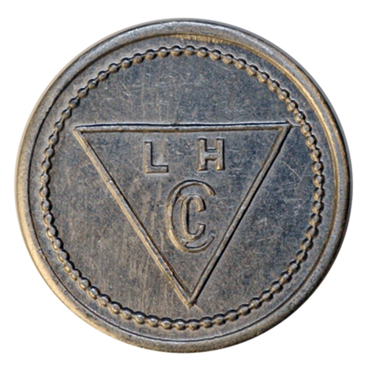 Lamson & Hubbard. (Baker Lake). Obv. L.H./Cc within triangle. Rev. 1. Aluminum. Stewart 16. EF.