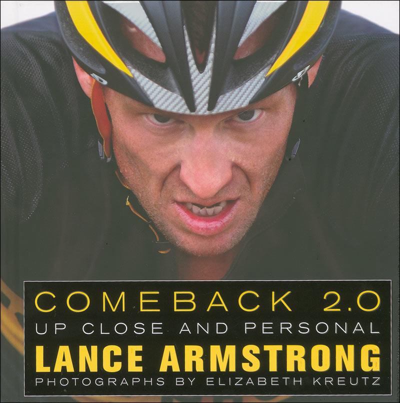 Signed book: Comeback 2.0. Later printing. NY: Simon & Schuster, 2008. Hardcover, 9.5 x 9.5. signed in black felt tip, “Lance Armstrong,” on the first free end page. In fine condition. Accompanied by five candid photos taken at the signing, an instruction sheet from the store, and store sign for the event.