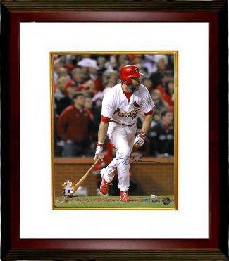 On July 5, 2011, Berkman hit his 350th career home run, and his long-ball was the second farthest home run ever hit in the new Busch Stadium.2011 became a comeback year for Berkman, as he was one of the team leaders in batting average, home runs and RBIs. He was named the NL Comeback Player of the Year. Berkman made key contributions in Game 6 of the 2011 World Series vs the Texas Rangers. He hit his first home run in a World Series game in the first inning and in the ninth, with St. Louis down to their final strike before elimination, Berkman was driven home followed by Albert Pujols after a game-tying 2-run triple by David Freese. Lance Berkman signed St. Louis Cardinals 16x20 Photo from the 2011 World Series. Limited Edition of 211. MLB Hologram and Certificate of Authenticity from Athlon Sports. Custom White Mat and Premium Mahogany Frame as shown.