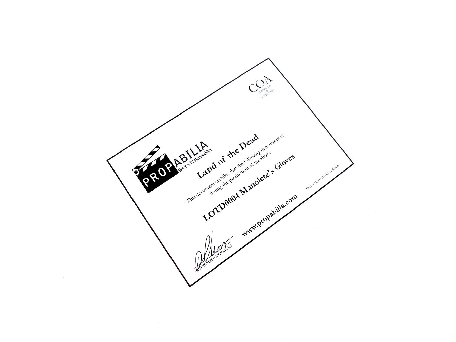 This pair of gloves was acquired by the production for use in 'Land of the Dead' (Universal, 2005).