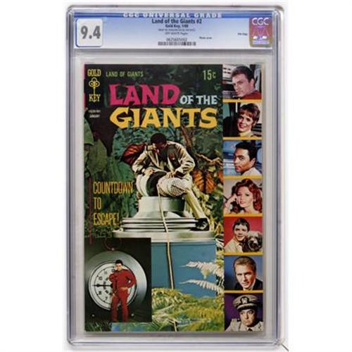 <B>Land of the Giants #2 File Copy (Gold Key, 1969) CGC NM 9.4 Off-white pages.</B></I> Photo cover. Overstreet 2007 NM- 9.2 value = $55. CGC census 5/07: 4 in 9.4, 1 higher. <I>From the Random House Archives.</B></I><BR><BR><b>Shipping:</b> Comics - Slabbed (certified) (<a target="_blank" href="http://www.heritageauctions.com/common/shipping.php">view shipping information</a>)