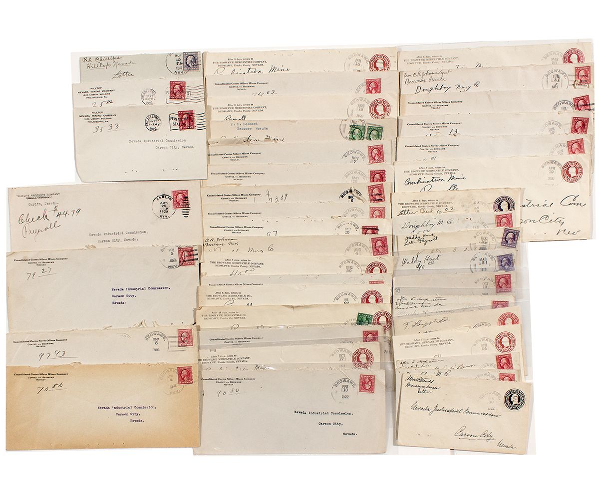 c1921 This is a lot of postal covers from various Lander County towns, including Hilltop (DPO), Beowawe (DPO), Carlin (DPO) and Cortez (DPO). All are in good condition. These are from former Nevada State Treasurer Dan Franks' collection. - HKA#66050