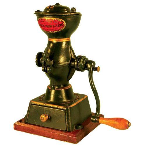 Landers Frary and Clark Coffee Mill, New Britain, CT. Number 11, Crown Coffee Mill all original paint and stenciling. Beautiful dark green color. Excellent original condition. 12 1/2 inches tall.