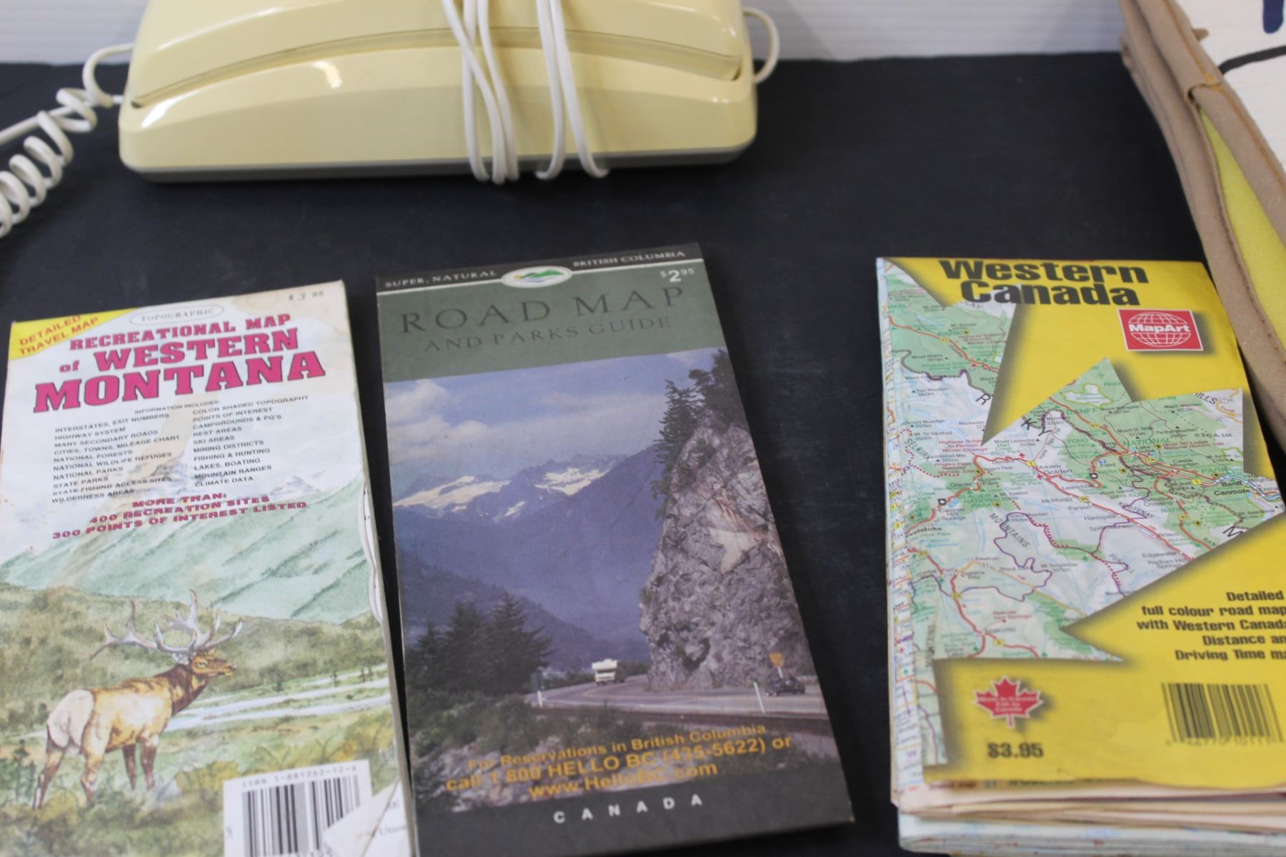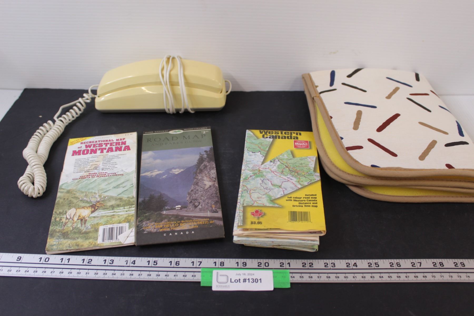 Landline Telephone, (3) Canadian Road Maps, & Baby Change Pad