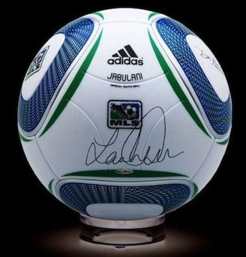 Adidas MLS Match soccer ball has been hand-signed in black felt-tip pen by Landon Donovan (Galaxy).