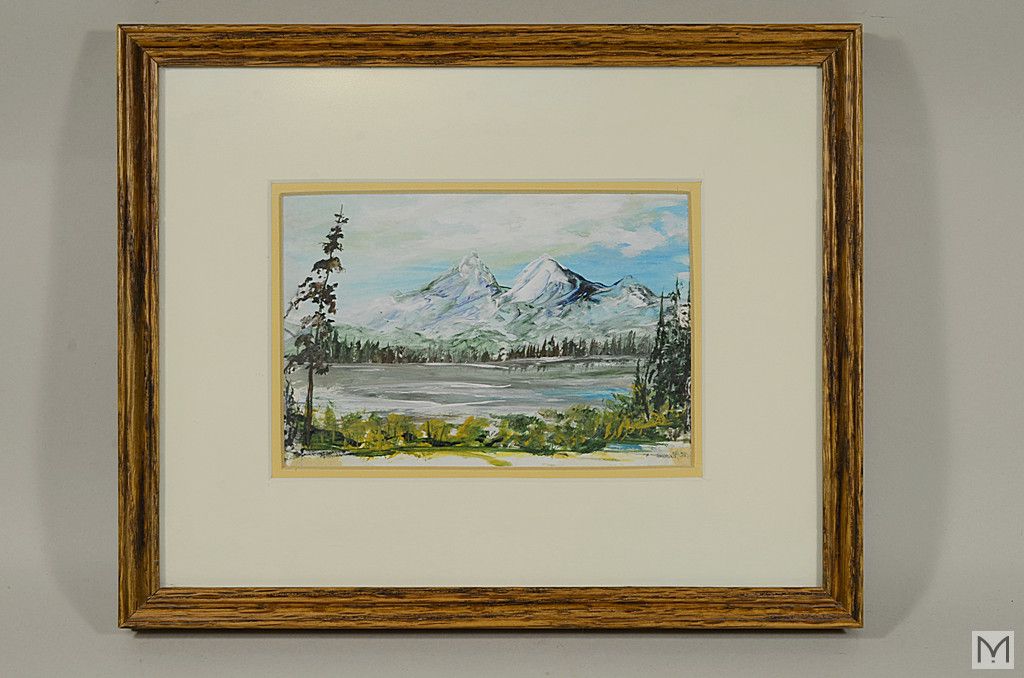 Landscape Acrylic on Paper by E. MacLeod (1987) - Sicamous B.C. 'At Water's Edge'