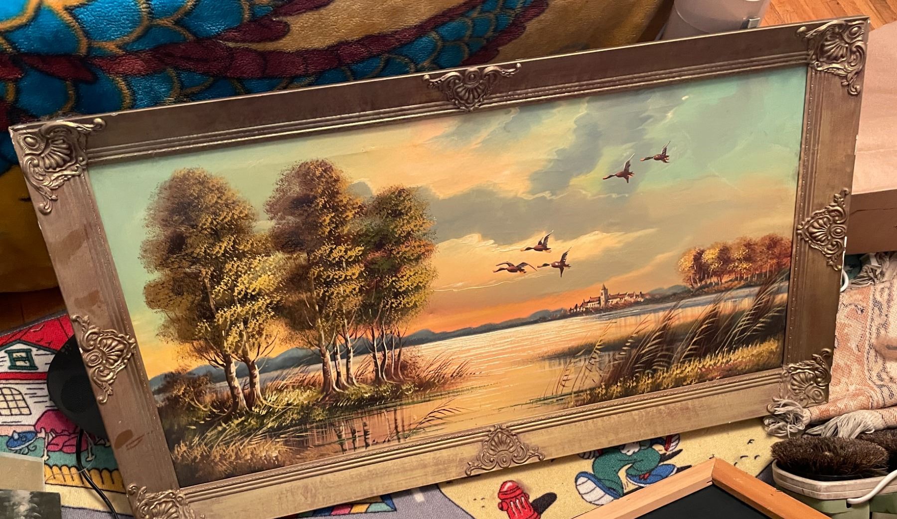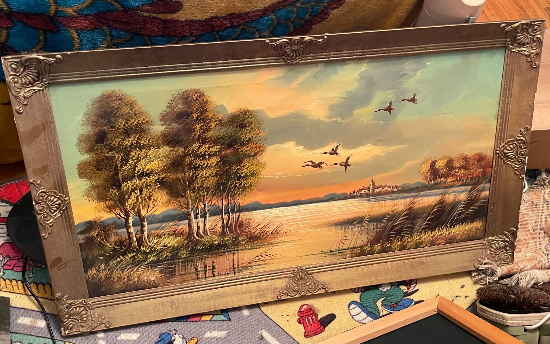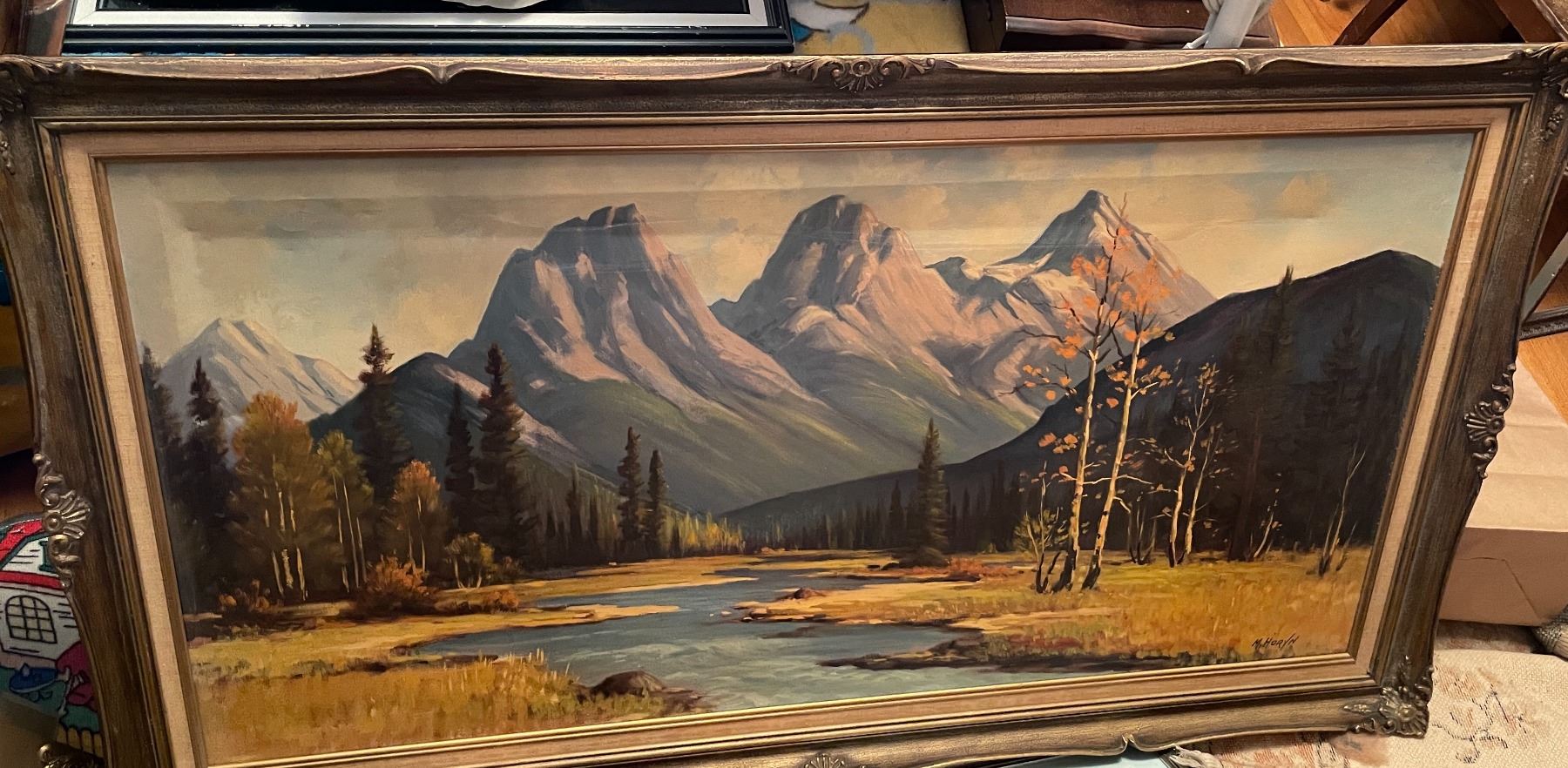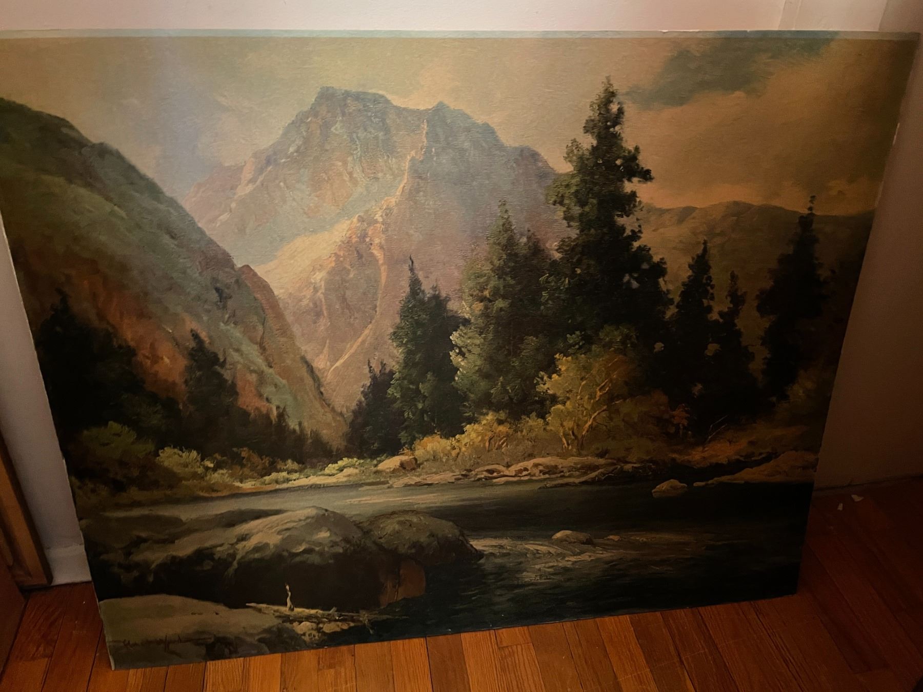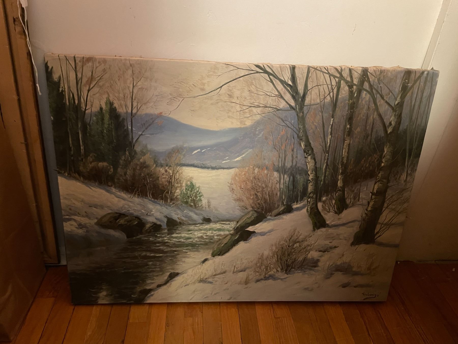 Signed M. Horyn 54" wide x 32" tall - Geese Flying 43.5" wide x 25" tall - Mountains (print) 30" wide x 24" tall - Winter Landscape 27" wide x 20" tall