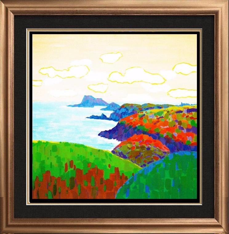 Neum Collection | Title of Art: Landscape Marina Con Roca | Medium: Unsigned Giclee on Canvas | Edition #: Open | Unframed Size: 51 x 51 inches | Offered Unframed. Framing Presentation are often shown for concept only. Read description: If framed, framed size will be given | Value: $ 600