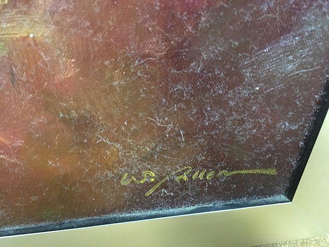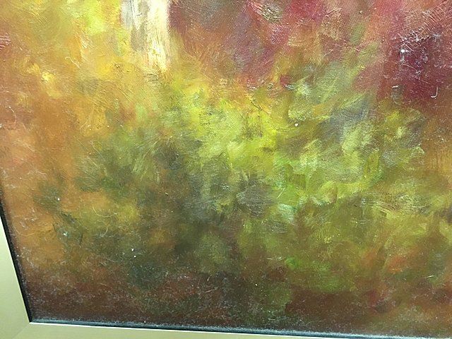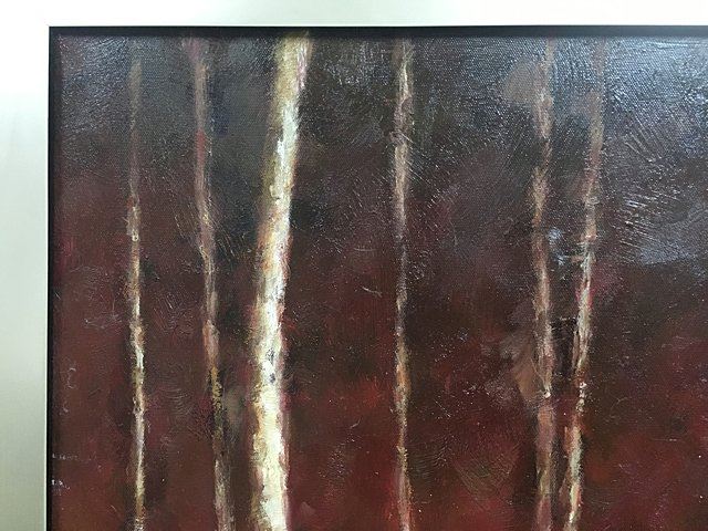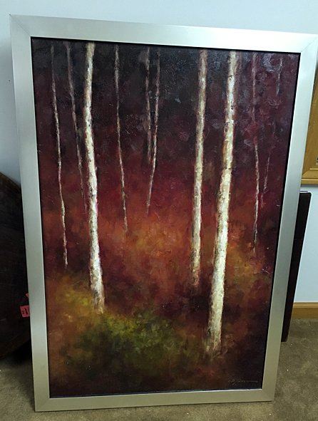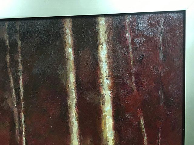 Beautifully painted birch trees landscape, oil on canvas, framed and signed "Allen", Measures approx. 39" tall x 27" wide (frame size).