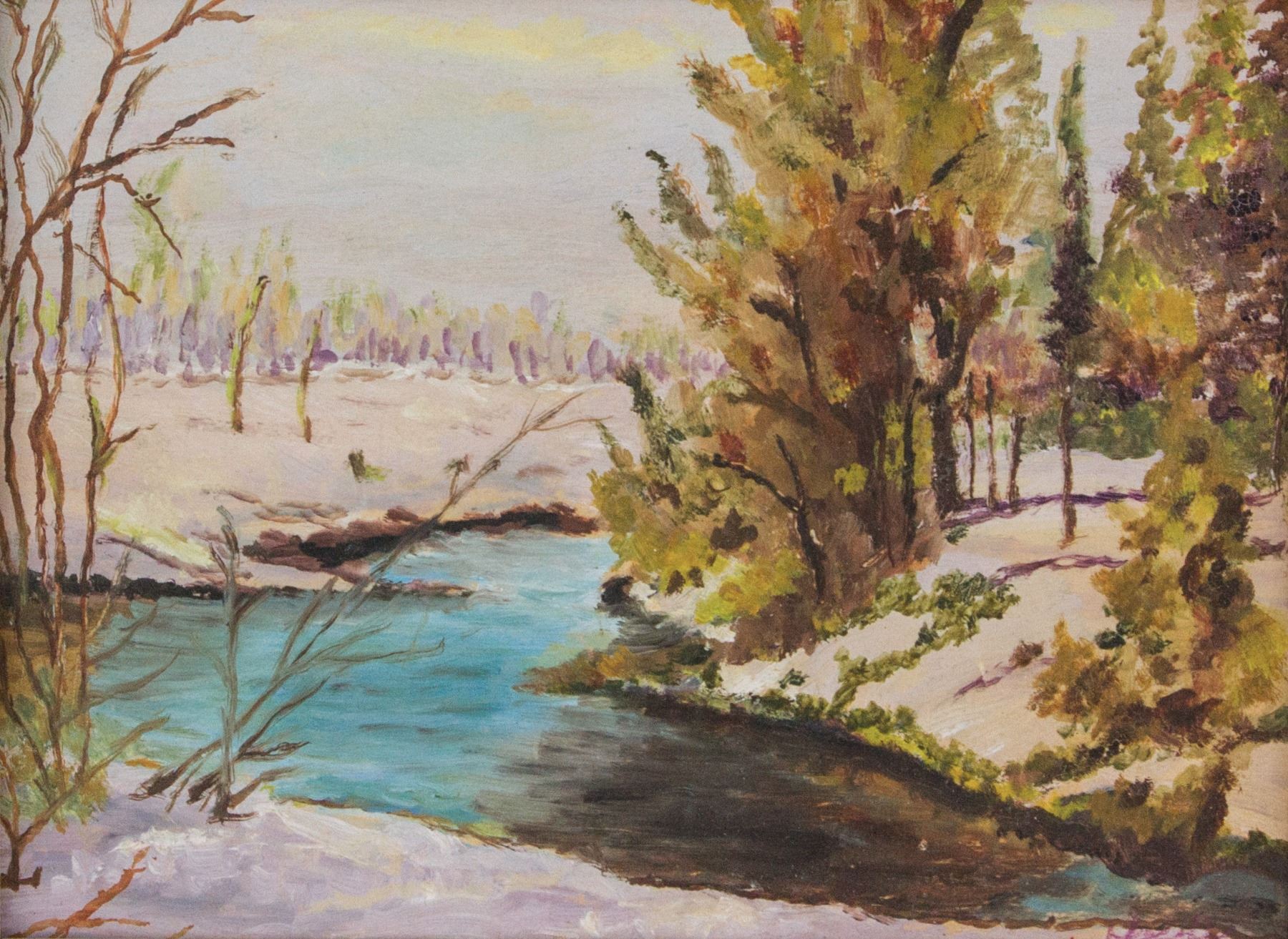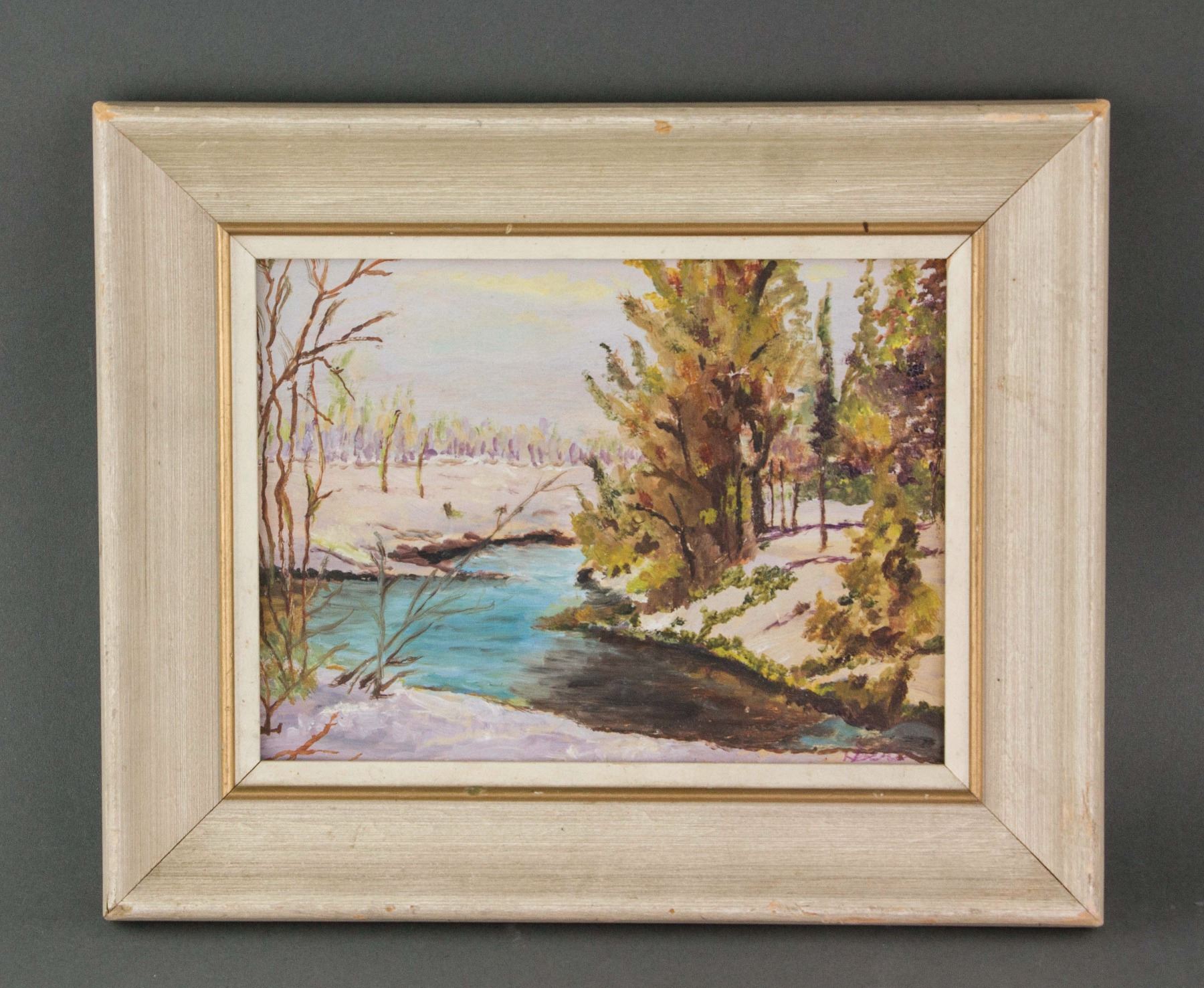 Landscape painting; gouache on board; framed signed on right lower corner by artist; 5.5 inch x 7.5 inch