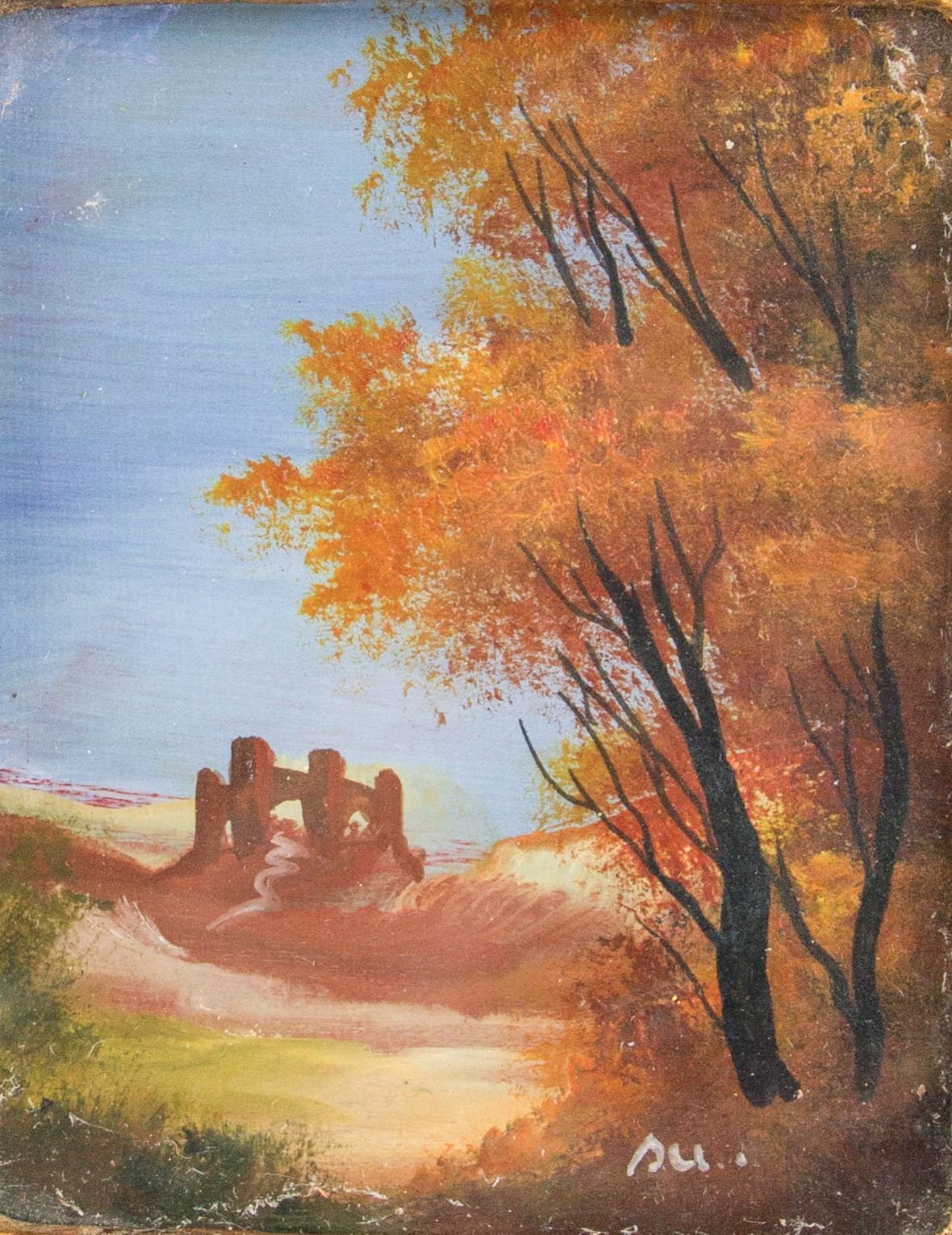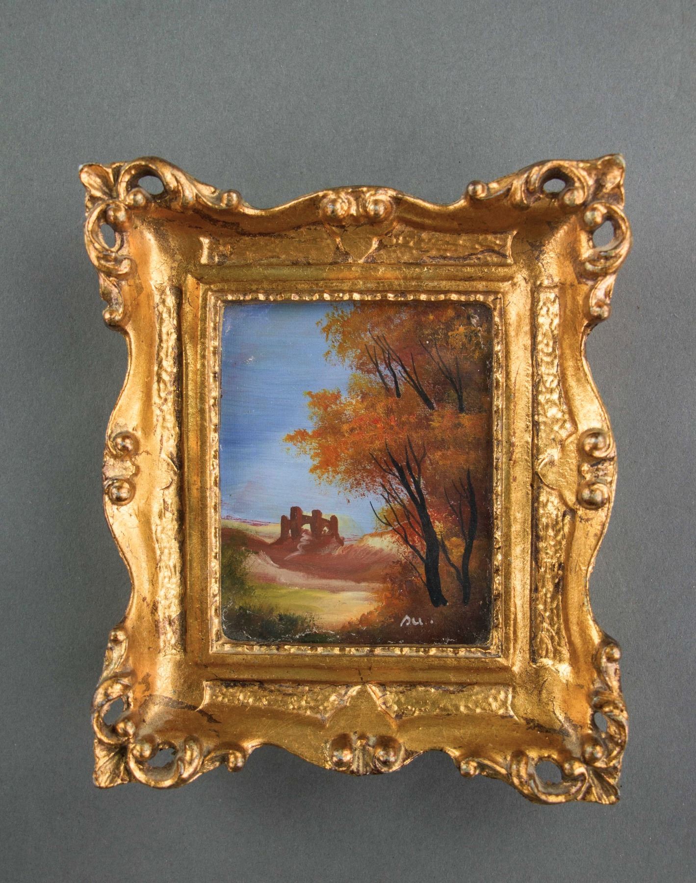 Landscape painting; oil on board; framed; signed on right lower corner by artist; 2.75 inch x 3.5 inch