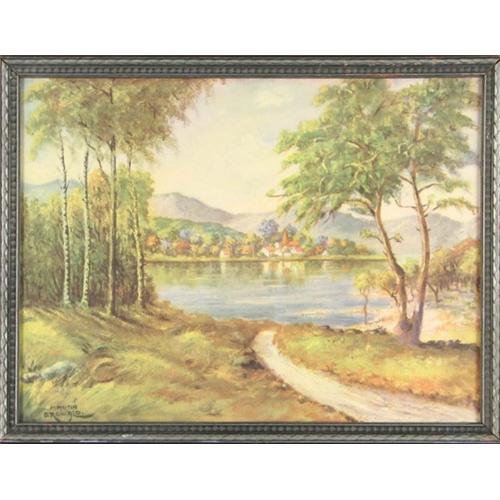 Landscape, print entitled ?Lake Town? by Martin G Ronald