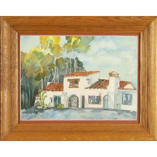 Landscape, watercolor entitled ?Spanish Village? painted by Bob Landry