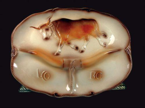 Lane and Company Large Serving Platter, 1959. Steer and horn pattern, style T-39. And a large serving bowl that is not pictures. No chips or cracks on either piece. Platter is 18 1/2 X 14 inches. Bowl is 6 inches tall and 11 1/2 inches diameter.