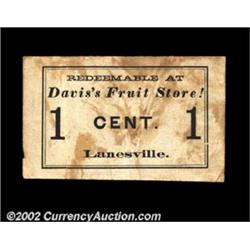 Lanesville, MA - Davis's Fruit Store 1ó UNLThis is the first example that we have ever seen from this issuer. Very Fine with some minor staining. Important notice: We expect to be auctioning lots at the rate of 200-250 per hour. Sometimes eBay Premier live bid software cannot keep up with that pace, so we strongly recommend that you place a realistic proxy bid now as insurance to avoid disappointment. Also please note that all Heritage/CAA lots purchased through eBay Premier carry a 20% Buyer's Premium. Please make sure you read the Terms and Conditions.