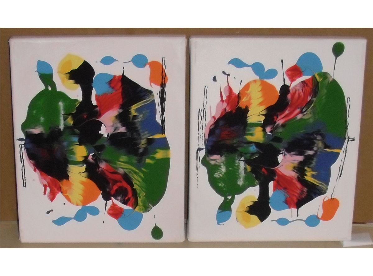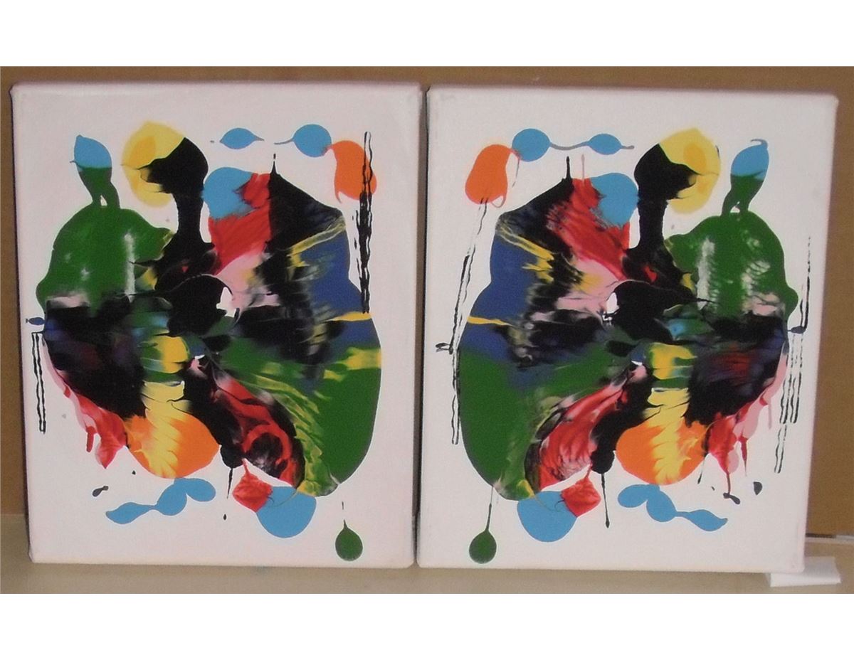'Langdonart Duo-Cercle-Rose-Noir' are two extraordinary paintings on canvas each 10 high x 8 inches or 10 by 20 long reading to hand on your wall as they have faux-cadre wood back frames, colourful unique creations by Artiste Langdonart, who innovates by presenting abstract forms like they are big people and also far away buildings such a Teepees or churches / synagogues; this 'Langdonart Duo-Cercle-Rose-Noir' two paintings as a duo when reversed becomes another landscape: 'Langdonart Soleil-Orange', which accentuates that "Langdonart Orange Sun" gives Hope to show 'Je suis Charlie' as "You are Charlie" for freedom; also 'Langdonart Duo-Cercle-Rose-Noir' when changed by INTERCHAGING remark the 'DIFFERENCE" of contrasts in unique culture or theatrical scenes or story telling, and yet mostly Peaceful !