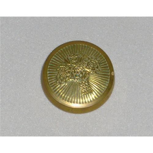 This rouge compact is from Langlois of Los Angeles. It is circa 1920s-1930s. Its case is made of gold metal with an embossed flower and ray design.<p>