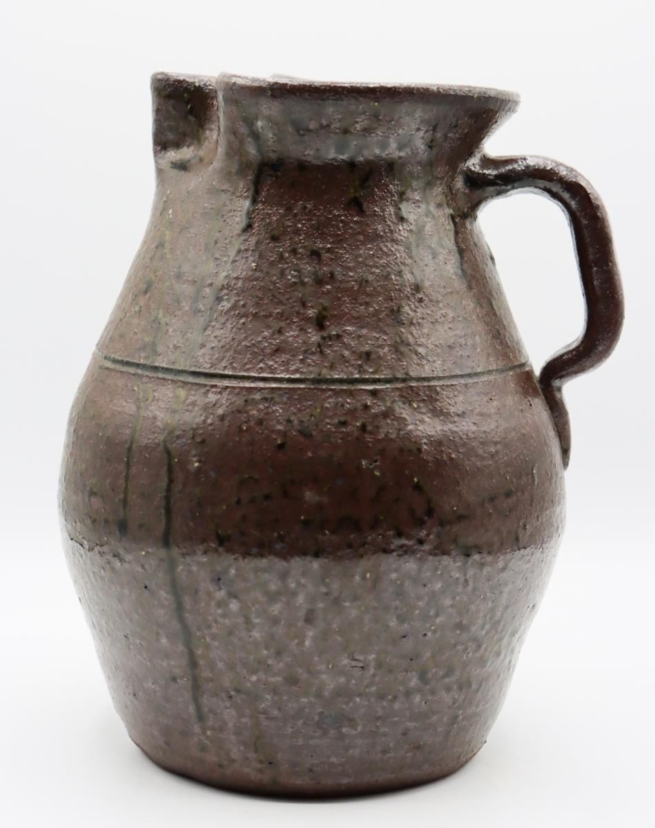 RARE Antique pitcher, 1 Gallon, used brown alkaline spit glaze. Amazing early work from this master of the craft.